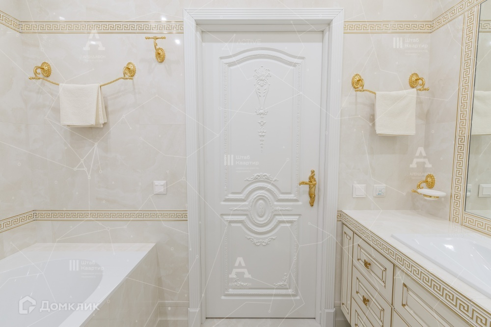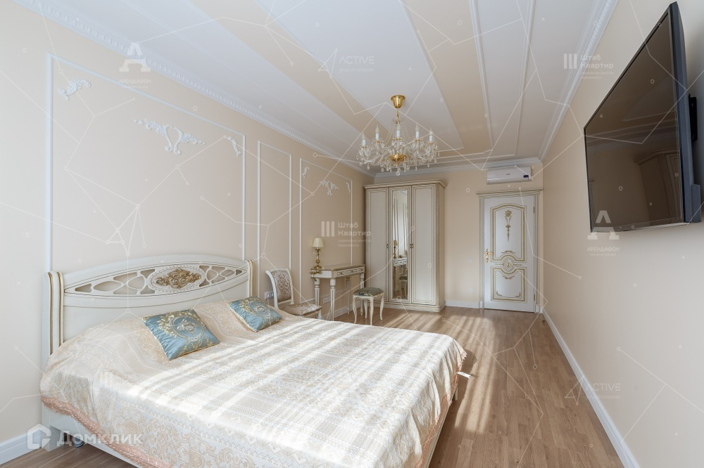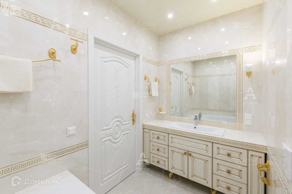 По планировке квартира включает в себя три спальных комнаты, большую холл-гостиную, кухню, постирочную комнату, гардеробную, а так же два санузла.