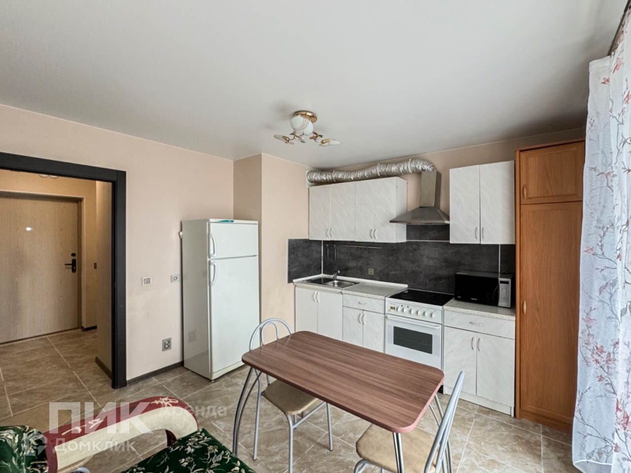 Коммунальные услуги и счётчики оплачиваются отдельно. Квартира оборудована кухонным гарнитуром, мебелью и бытовой техникой. Есть телевизор, холодильник, стиральная машина, микроволновая печь и плита. Полы – ламинат и плитка. Окна выходят во двор, есть бесплатная парковка.