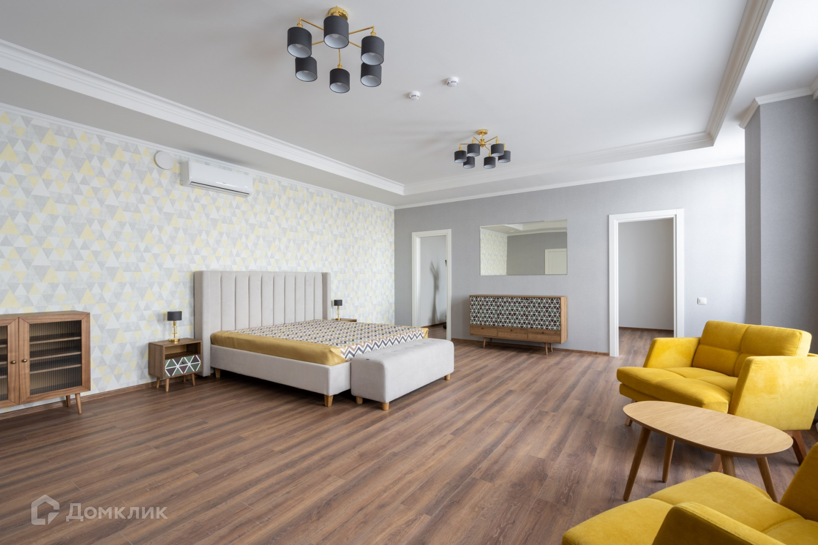 Шикарная большая терраса и прекрасный вид на город. Просторная кухня, гостиная, две спальных комнаты, одна из которых также соединена еще с одной комнатой, которая предполагается под кабинет. По факту 3 изолированные комнаты, но две из них проходные. Два санузла: один с ванной, второй с душевой. Мастер-спальня. Кондиционеры.