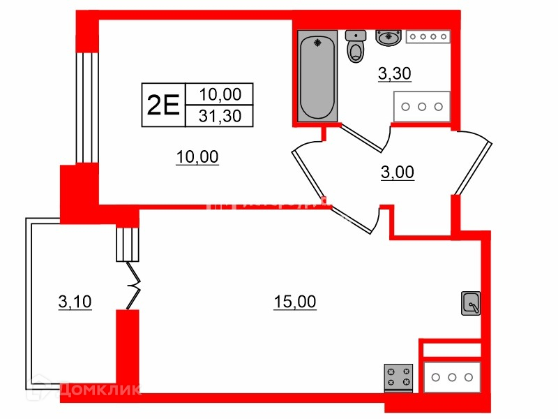 Общая площадь 31.1 м2