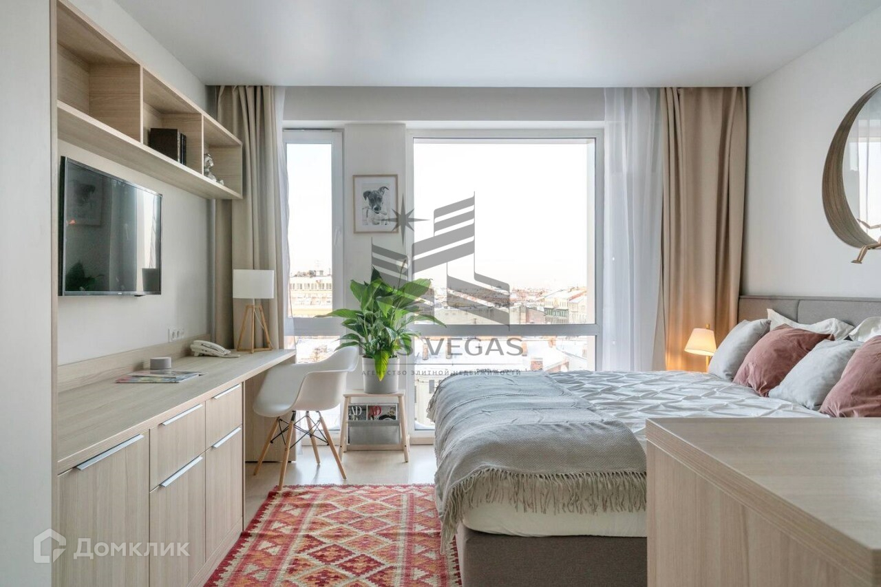 Полный света, уютный и теплый апартамент с панорамным окном в самом центре Петербурга .