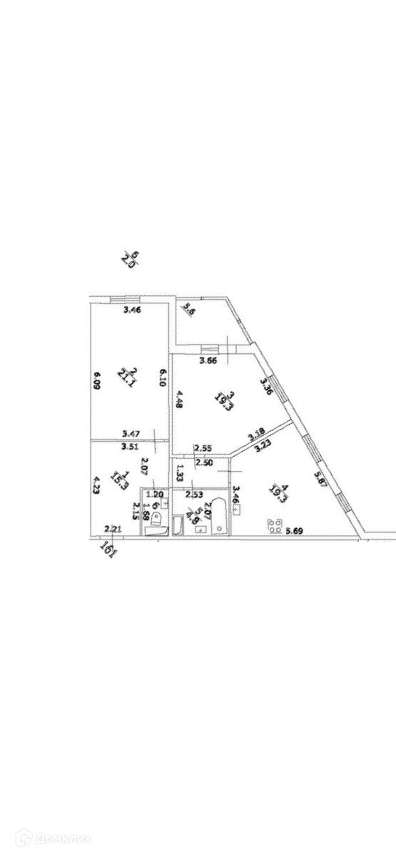 Жилая площадь 38.6 м2