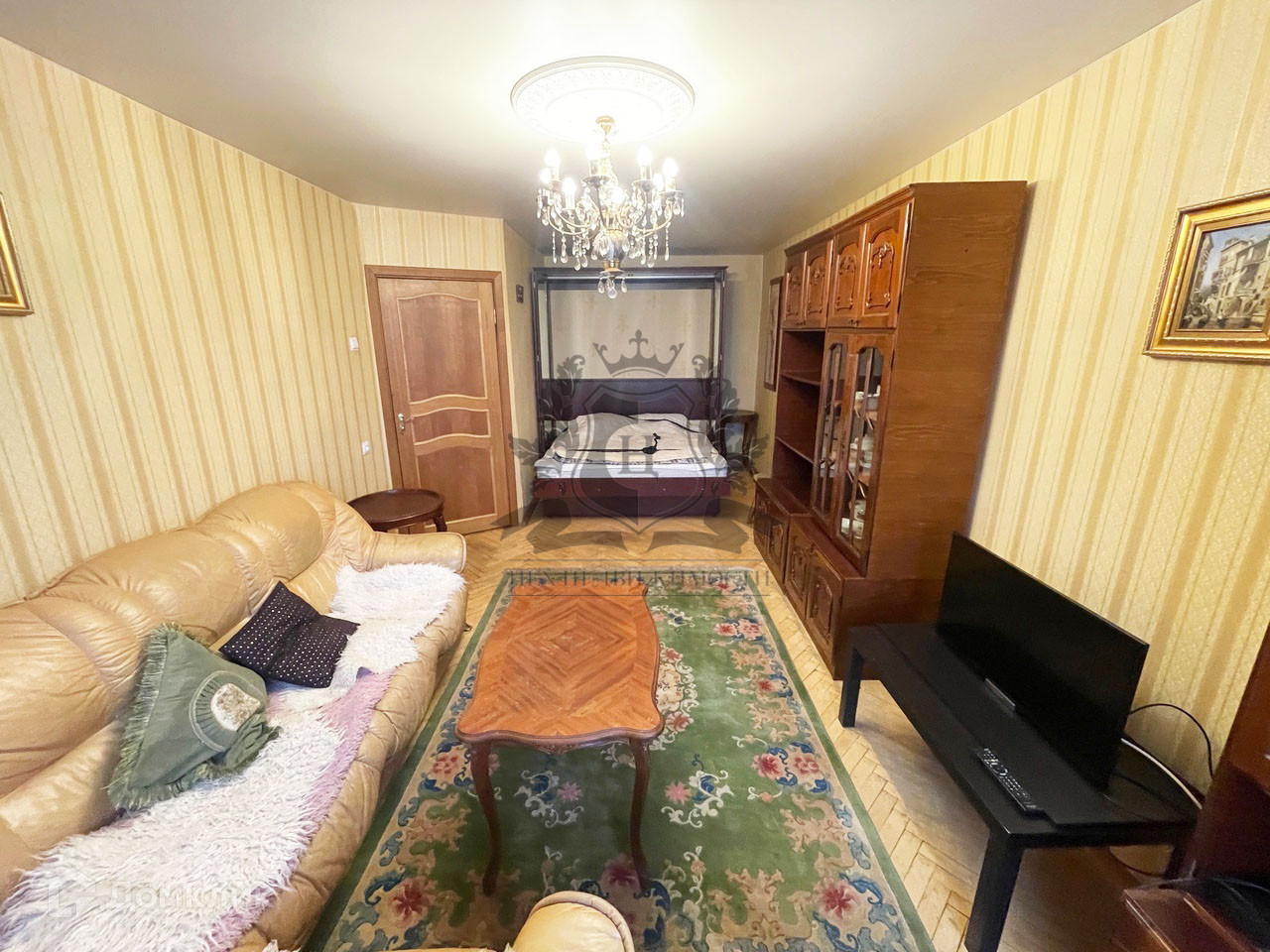 Есть все необходимое для жизни: холодильник, стиральная машина, телевизор, диван, кровать, стол, стулья.