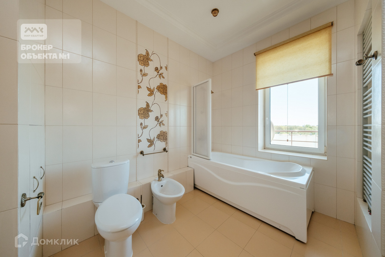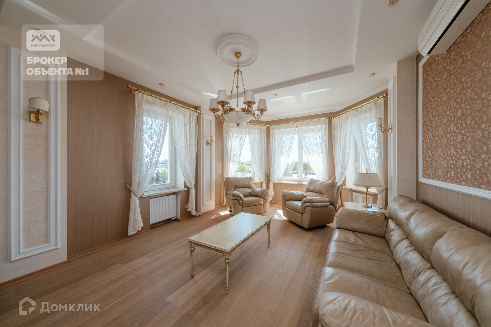 Общая площадь 100 м2, на которой комфортно расположились две комнаты и уютная гостиная, два сан.узла, есть балкон и лоджия.