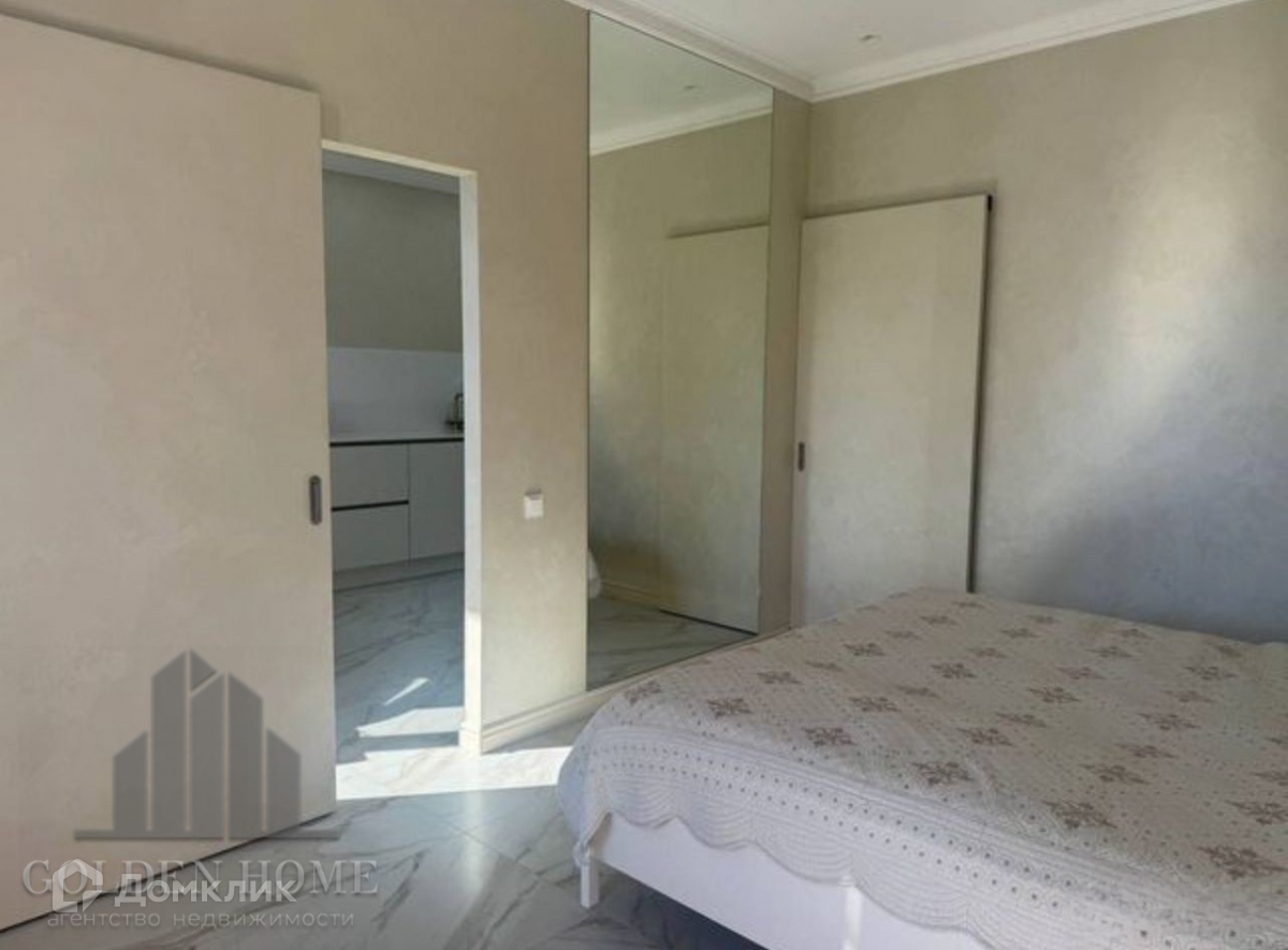 В спальне стоит большая двуспальная кровать с ортопедическим матрасом размером 180х200 см. Постельное бельё белоснежное и идеально выглаженное. Также в спальне есть удобные подушки и одеяла.