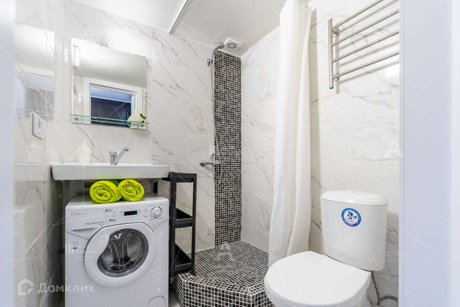 В санузле есть душ, стиральная машина.