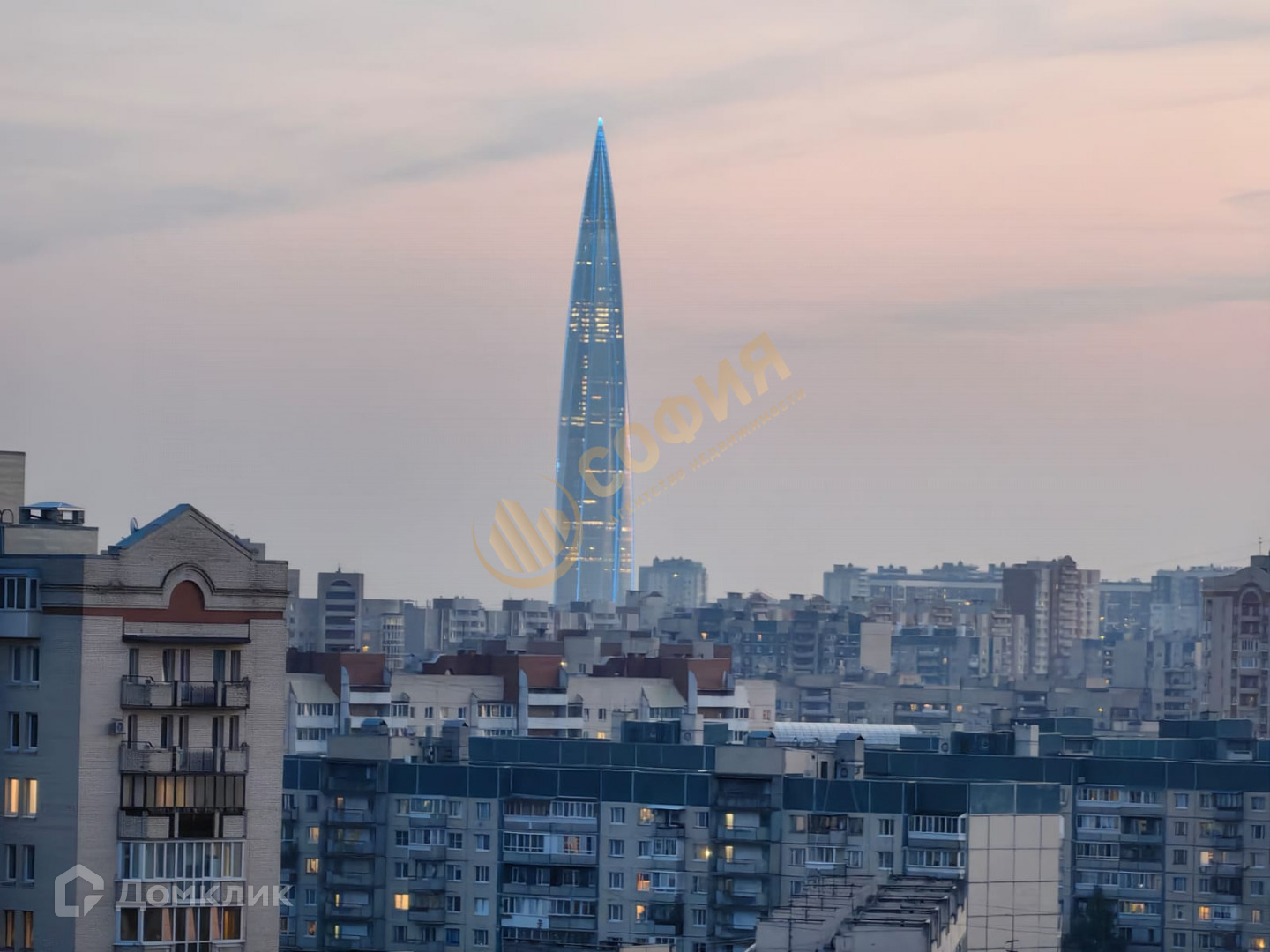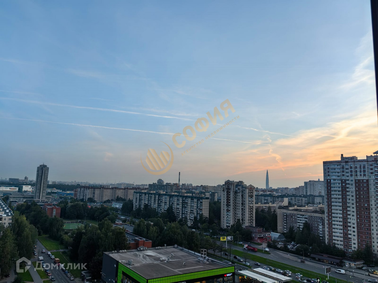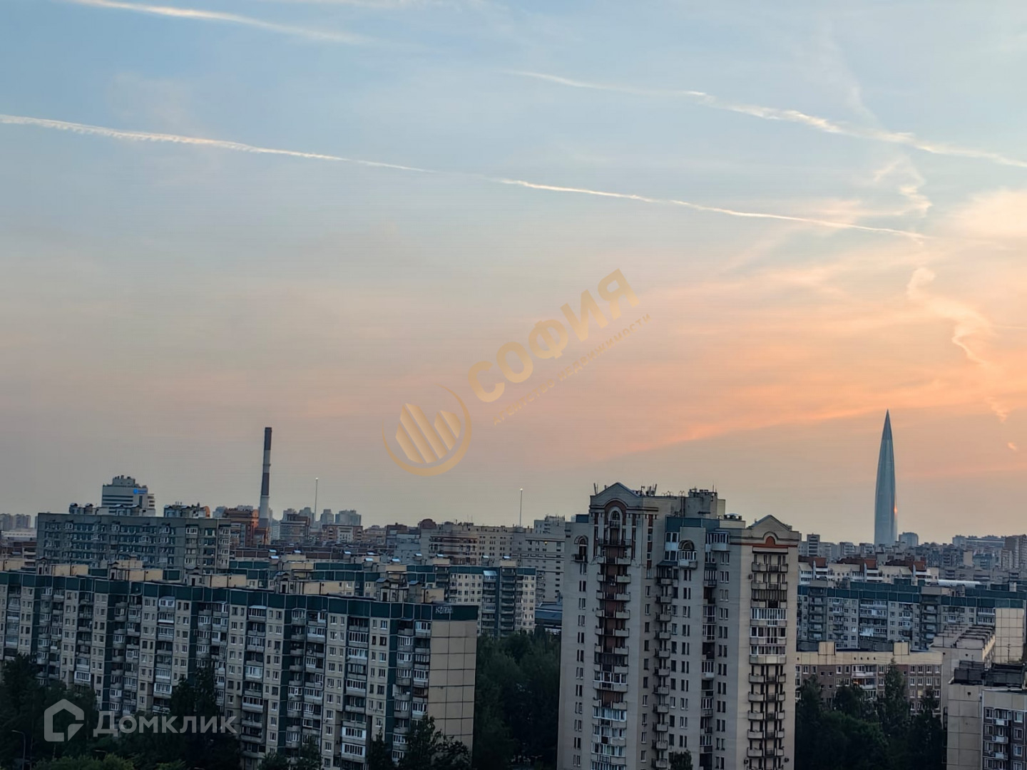 Окна выходят на запад. Красивые закаты и вид на Лахта-центр и стадион Газпром Арена.