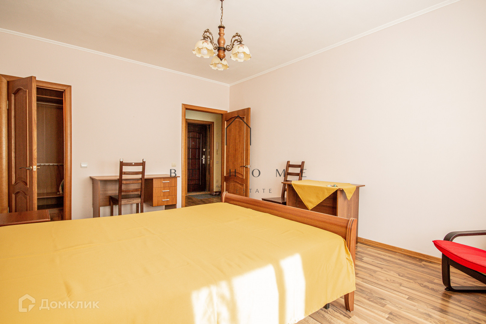 Современная мебель и техника. Просторная гардеробная для личных вещей.