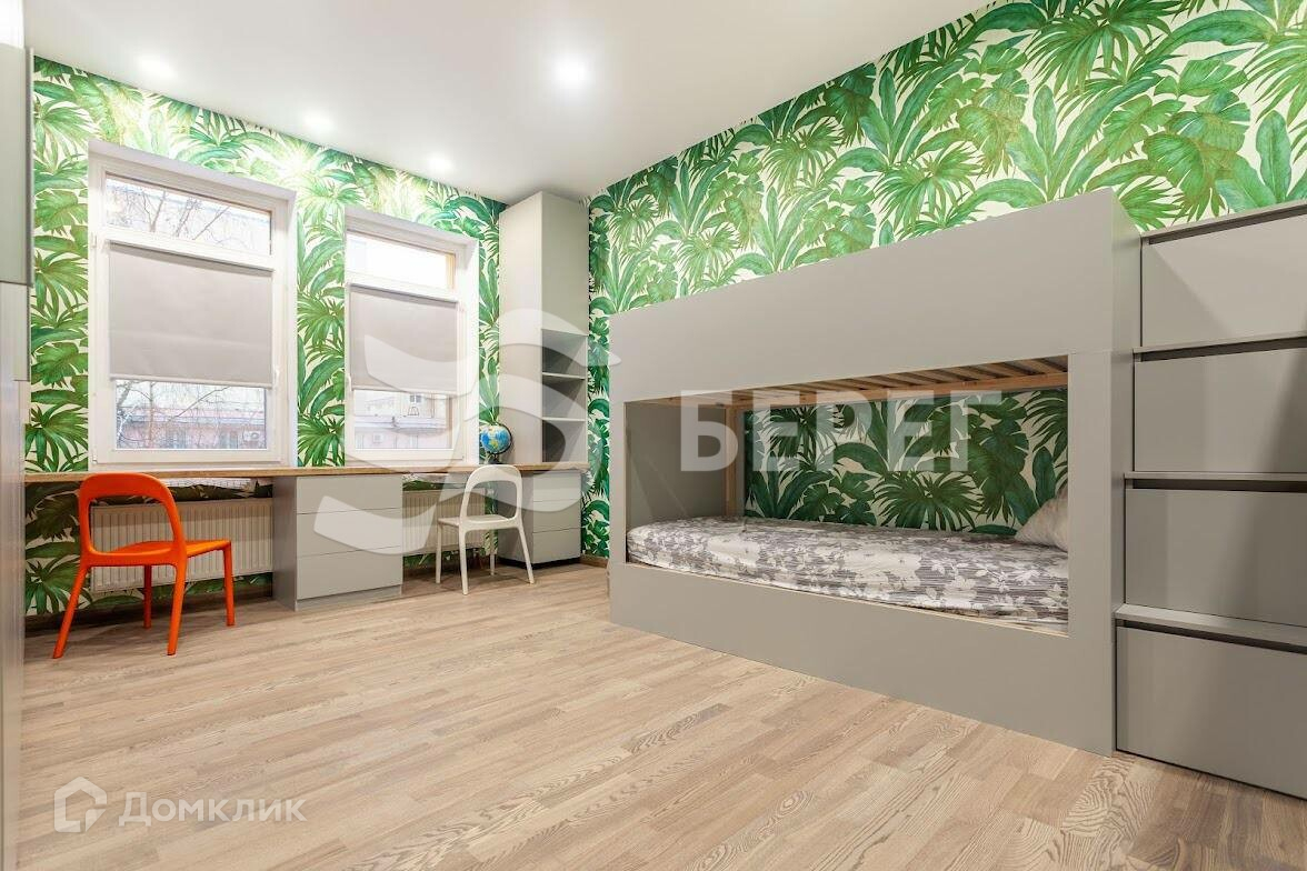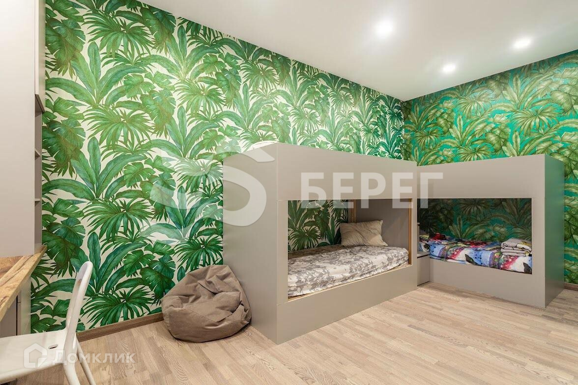 В квартире две изолированные комнаты и большая уютная кухня-гостиная. В спальне расположена кровать со встроенным массажем и вместительный шкаф. В детской стоит две двухъярусные кровати (по желанию можно убрать одну) и письменные столы для комфортного обучения.