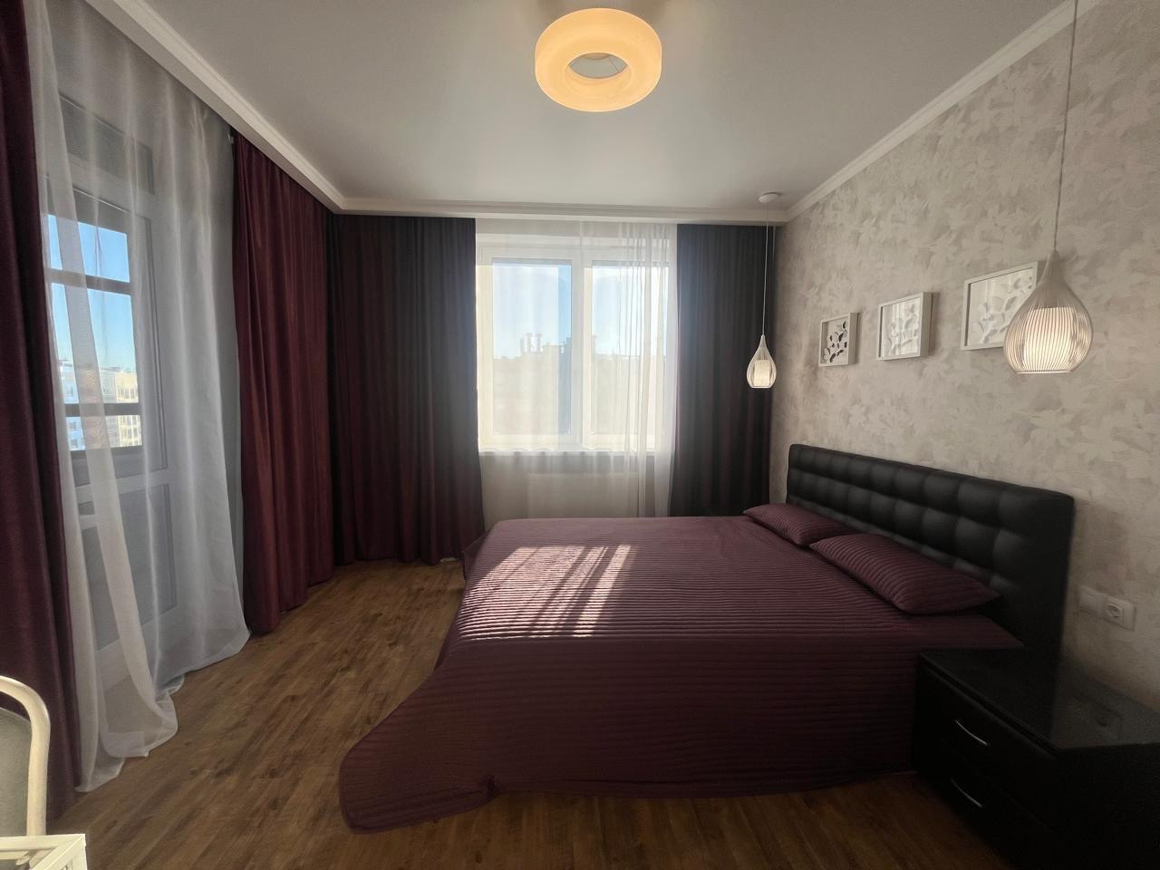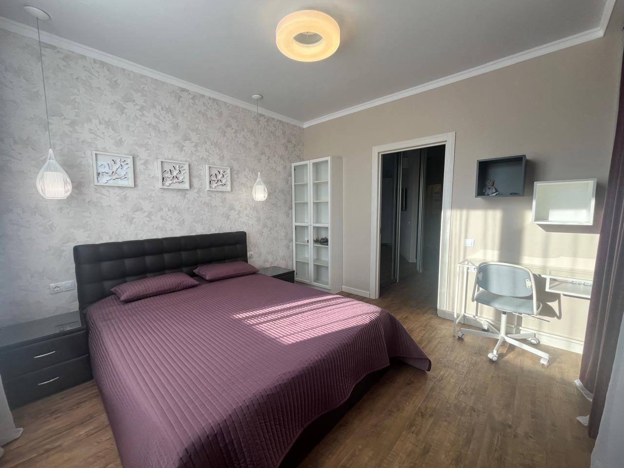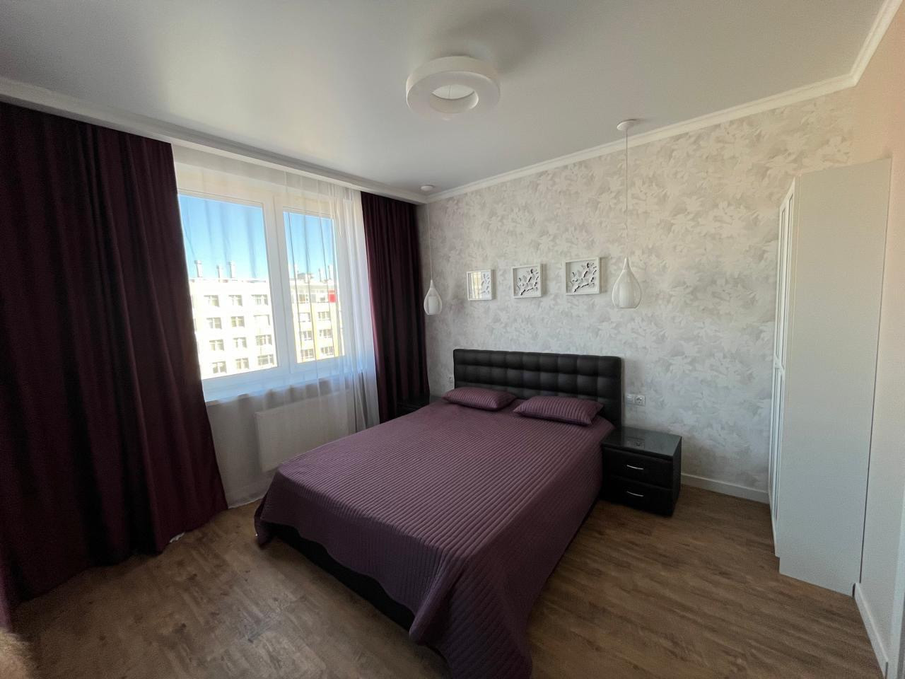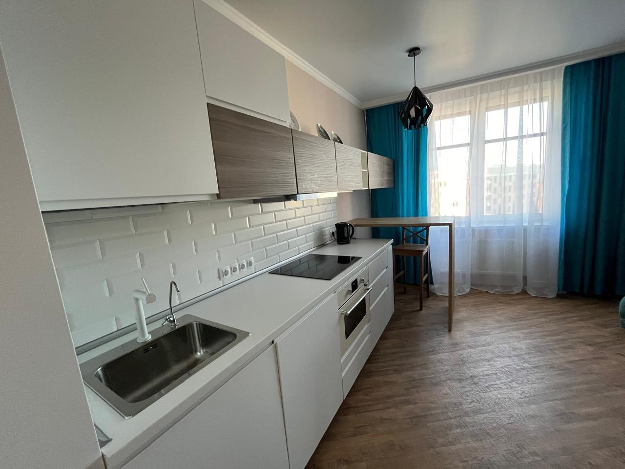 Предлагается в аренду на длительный срок двухкомнатная квартира европейской планировки. Планировка- спальня и просторная кухня-гостиная. Квартира сдается ВПЕРВЫЕ, в ней не проживали. Для комфортного проживания имеется вся мебель, бытовая техника, посуда, кухонные принадлежности, постельное белье и полотенца. Кухонный гарнитур оснащен встроенным холодильником, плитой, посудомойкой, духовым шкафом со встроенной микроволновкой. Предусмотрены две вместительные гардеробные.