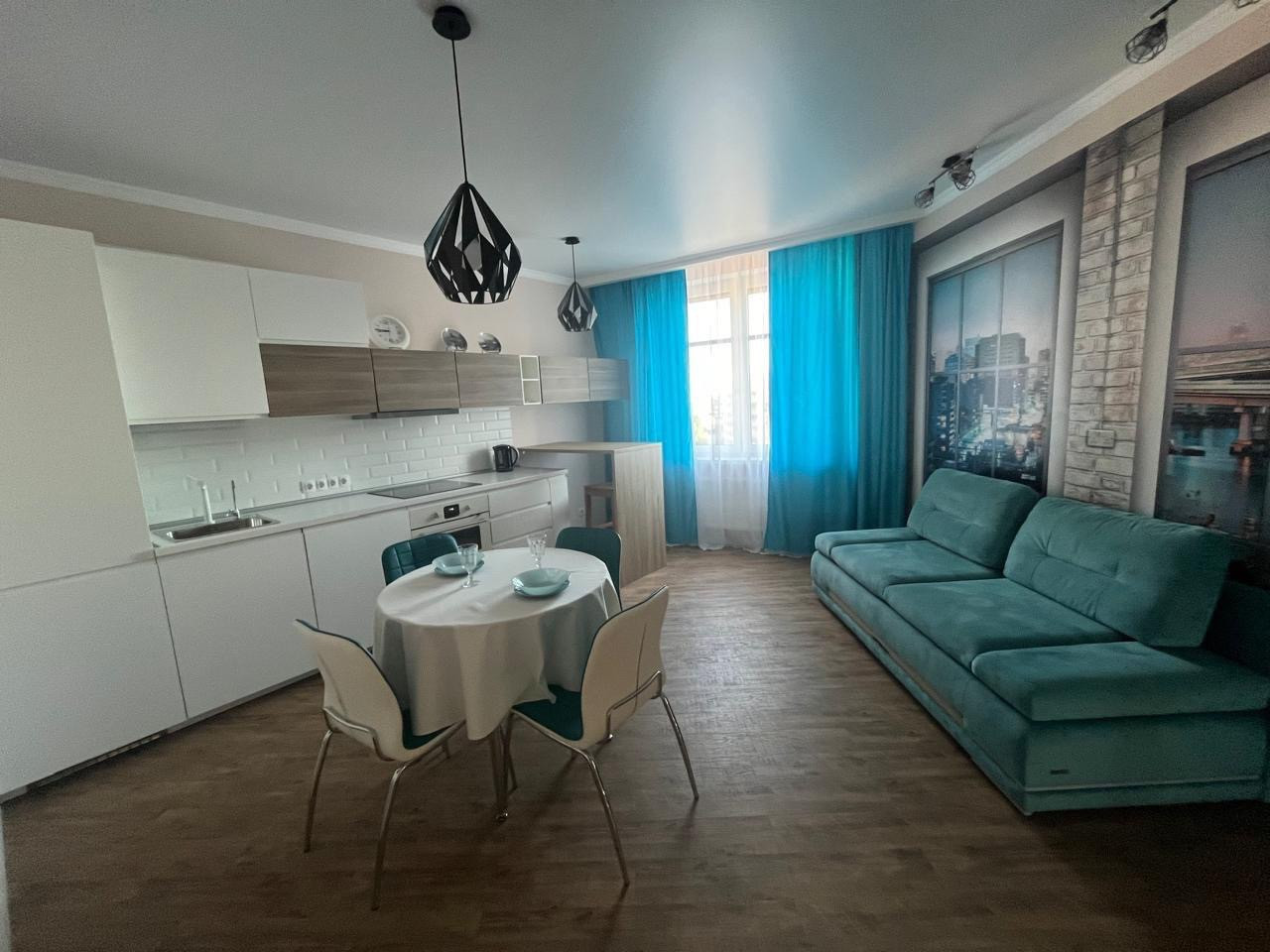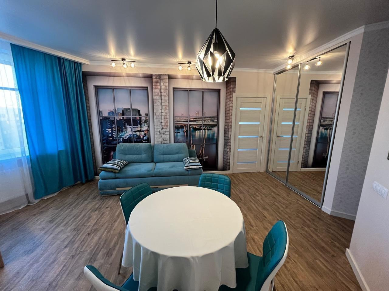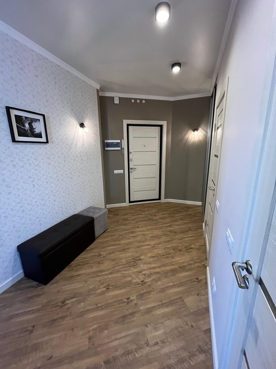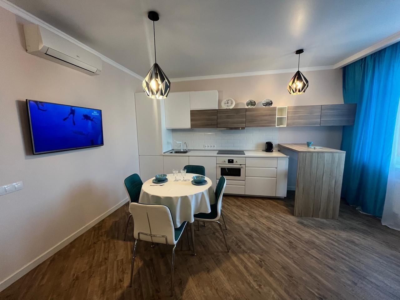 Предлагается в аренду на длительный срок двухкомнатная квартира европейской планировки. Планировка- спальня и просторная кухня-гостиная. Квартира сдается ВПЕРВЫЕ, в ней не проживали. Для комфортного проживания имеется вся мебель, бытовая техника, посуда, кухонные принадлежности, постельное белье и полотенца. Кухонный гарнитур оснащен встроенным холодильником, плитой, посудомойкой, духовым шкафом со встроенной микроволновкой. Предусмотрены две вместительные гардеробные.