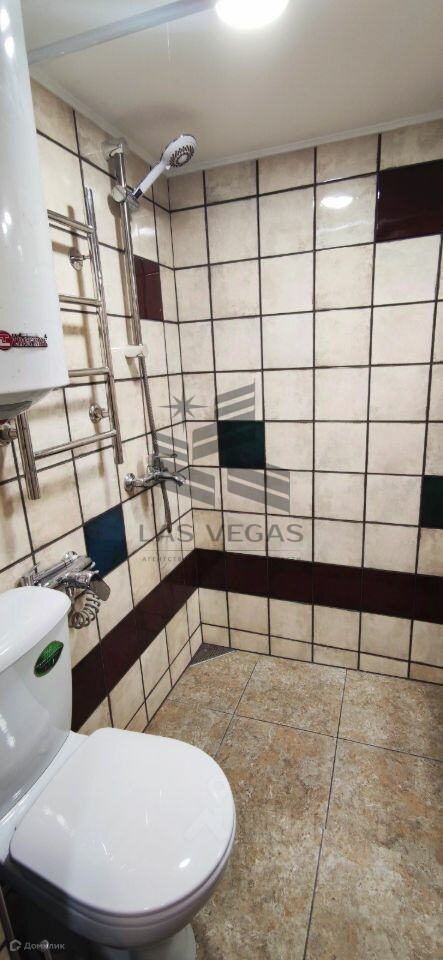 Стильный санузел с теплым полом и душем.