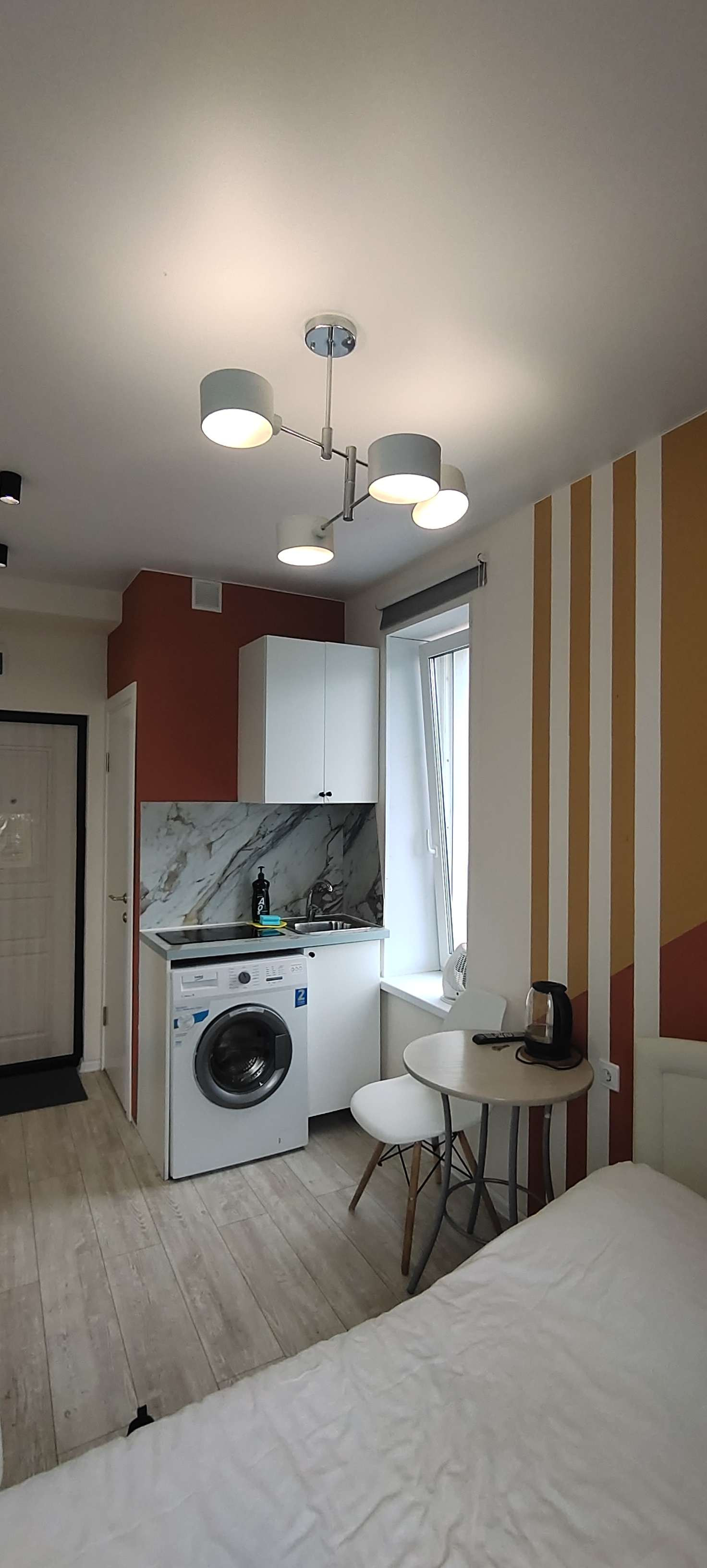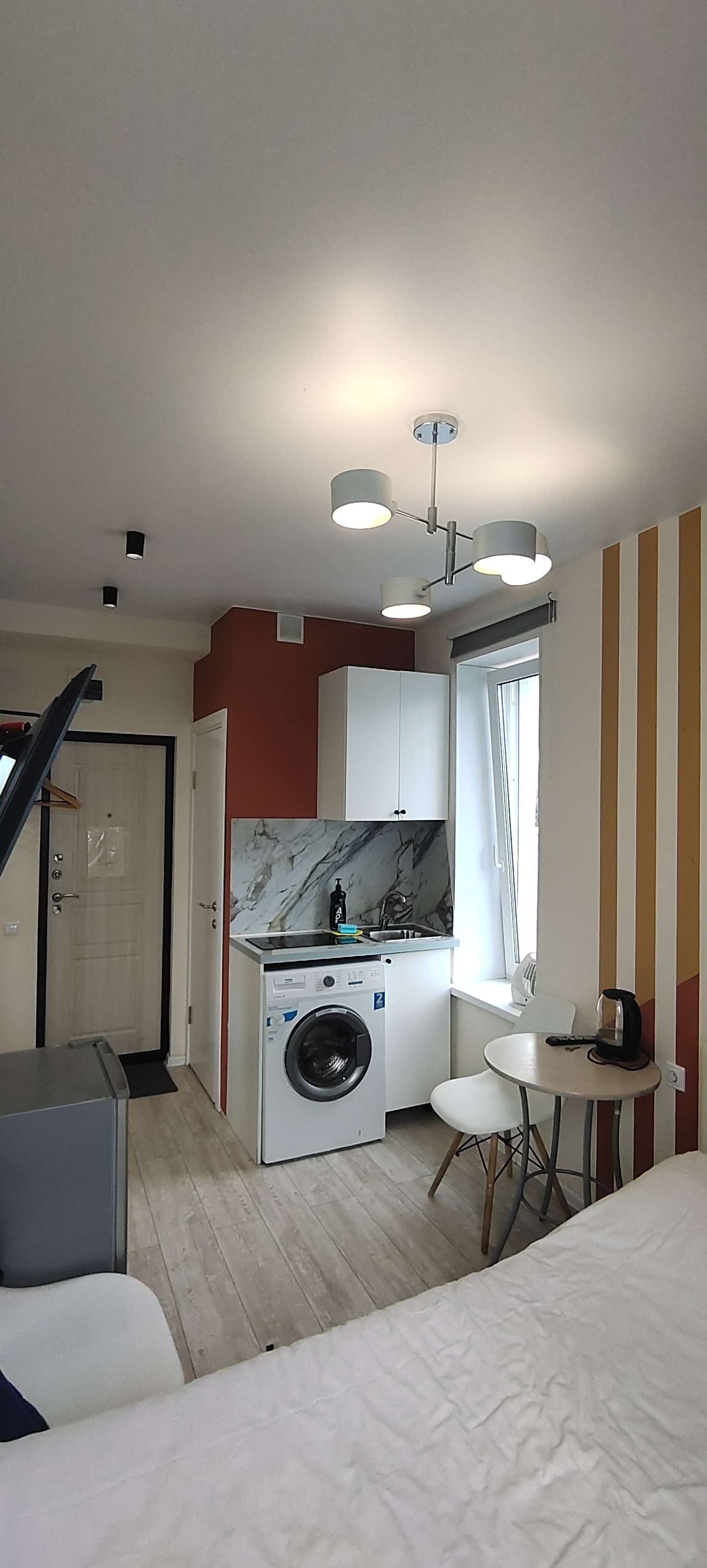 Два светлых окна, с просторной кухней и спальной зоной. Много света и чумачечий вид.