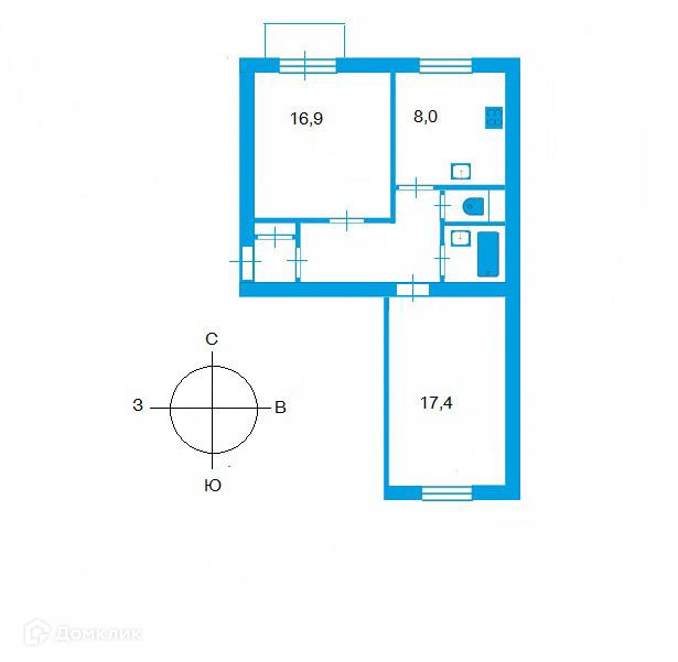 Жилая площадь 34.3 м2