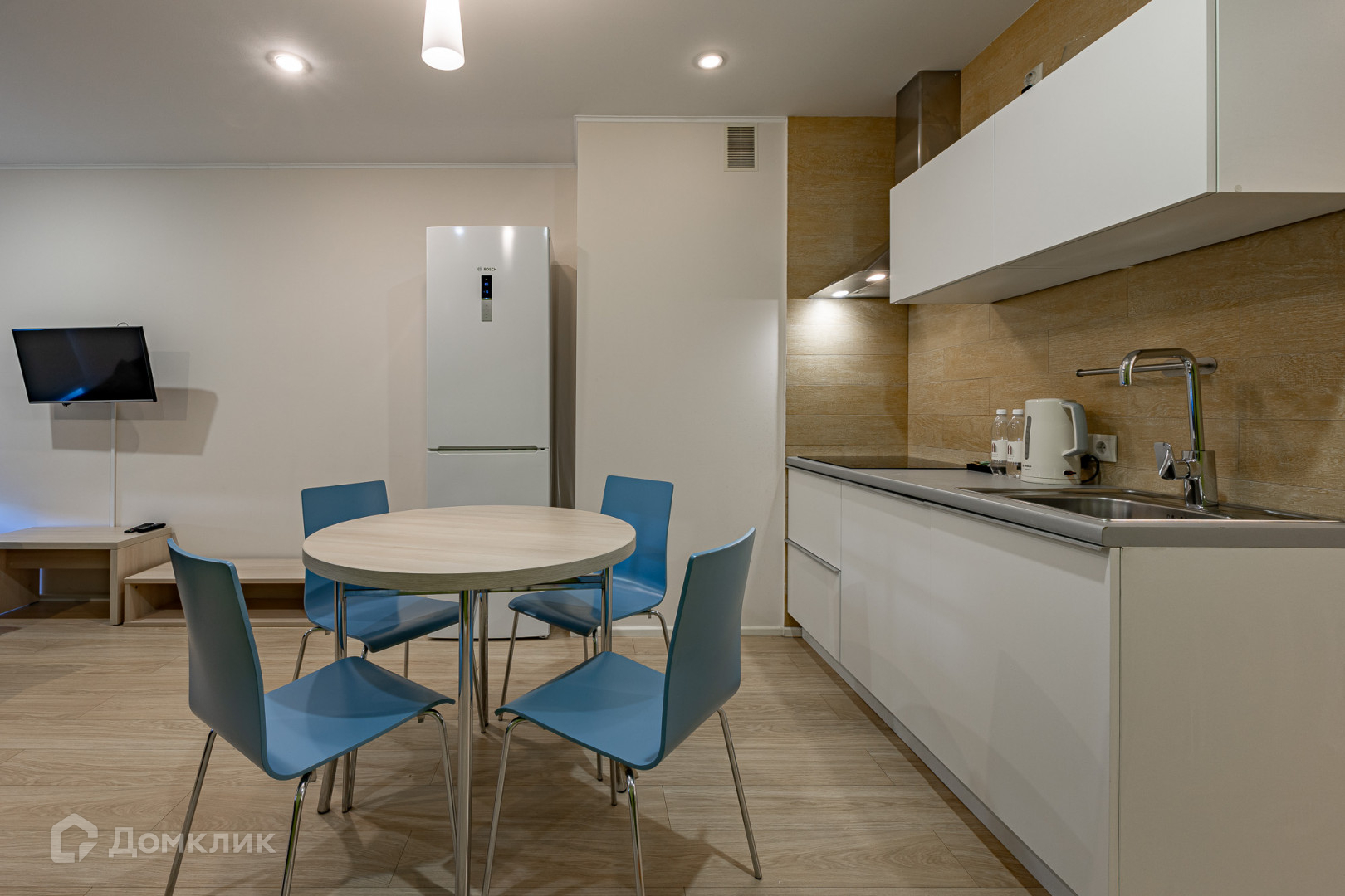 Апартаменты полностью оборудованы мебелью, постельным бельем, посудой, компактной кухней и современной техникой для комфортного проживания.