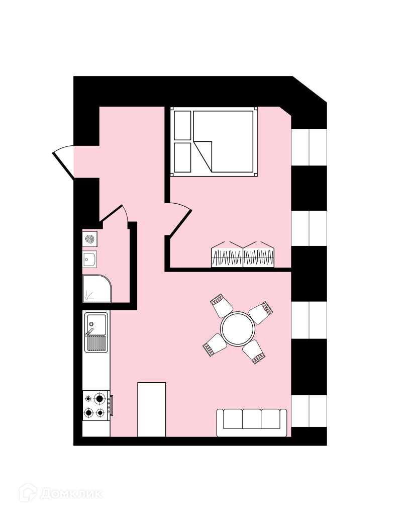 Жилая площадь 24.3 м2