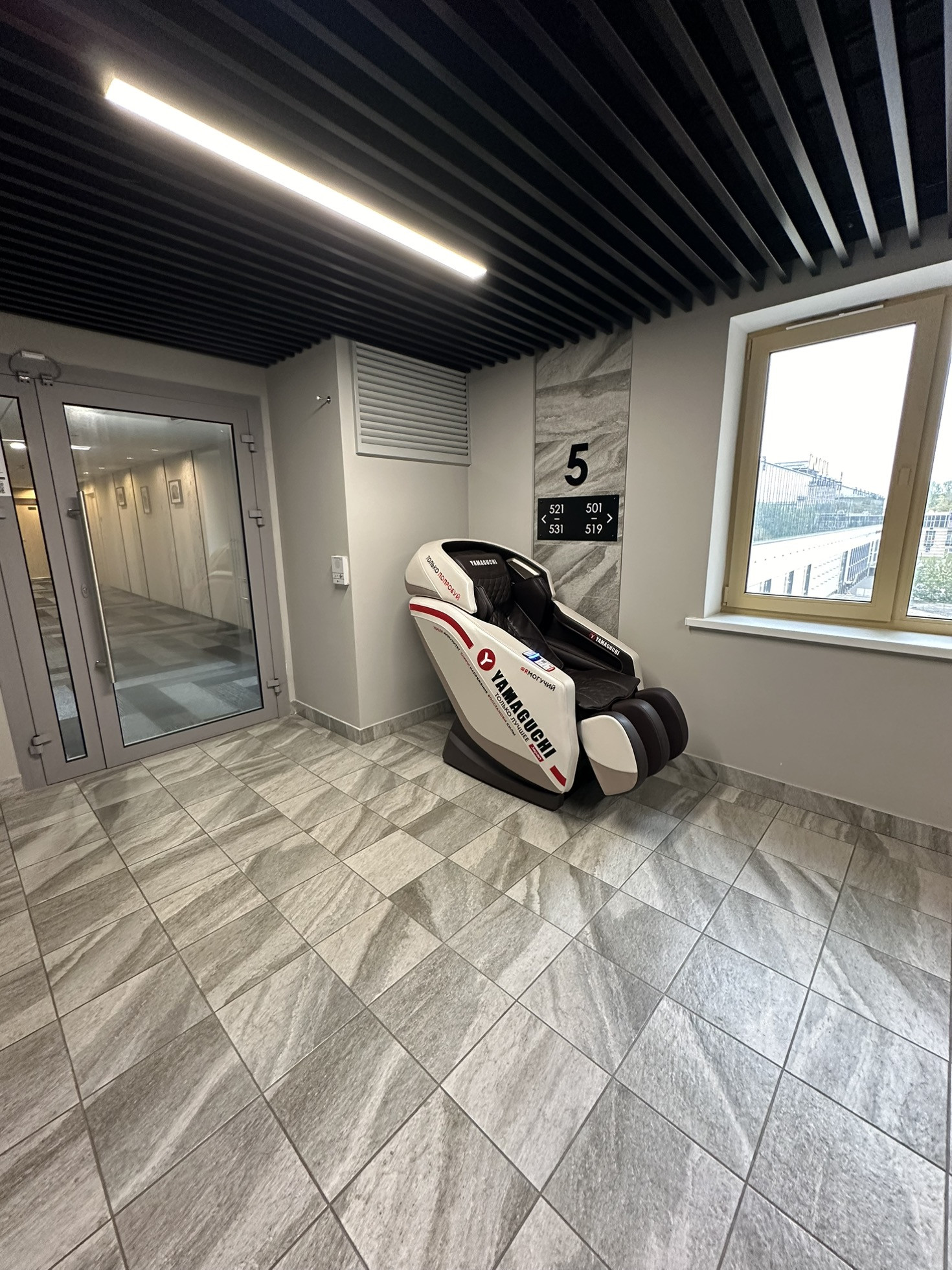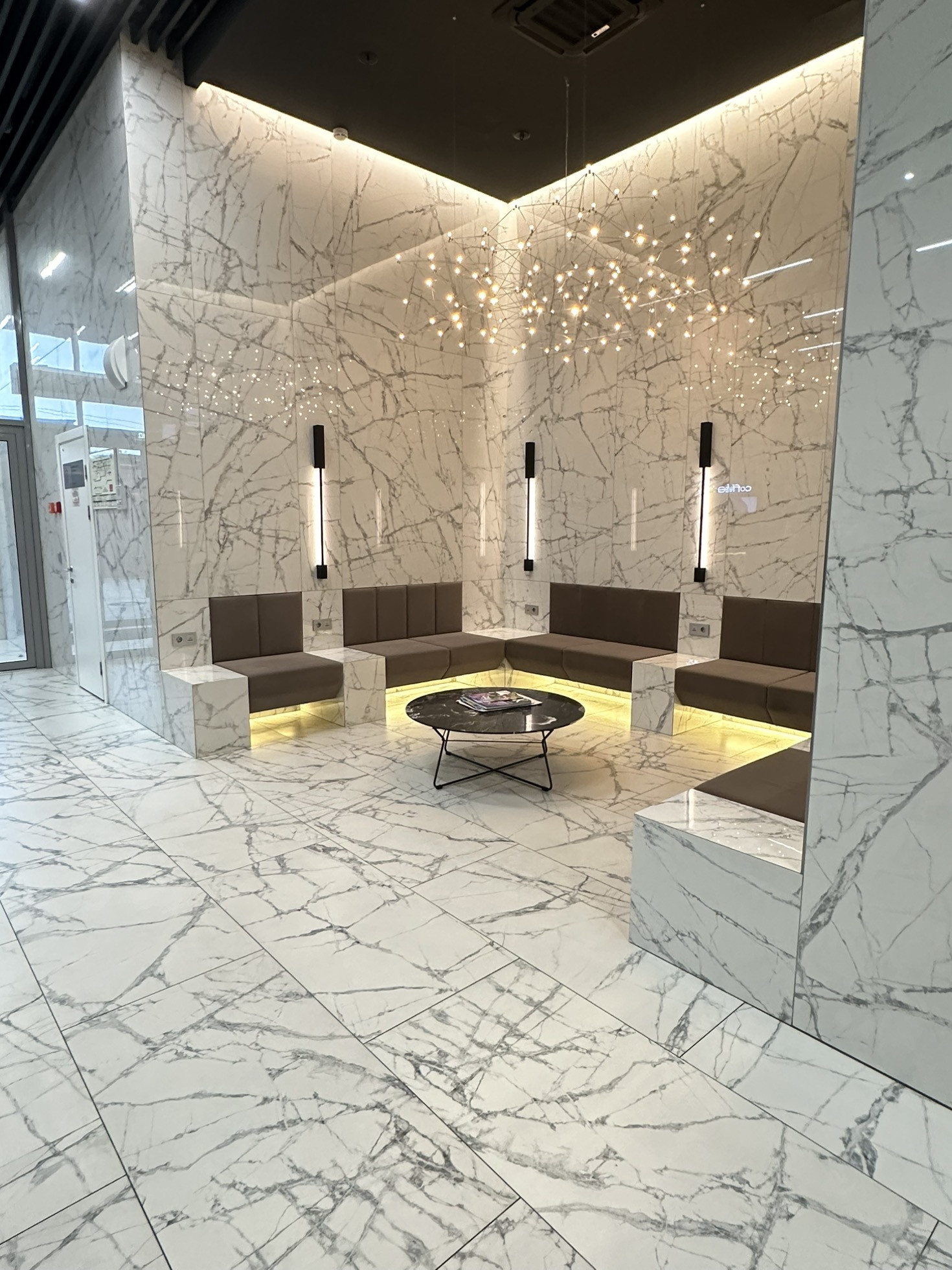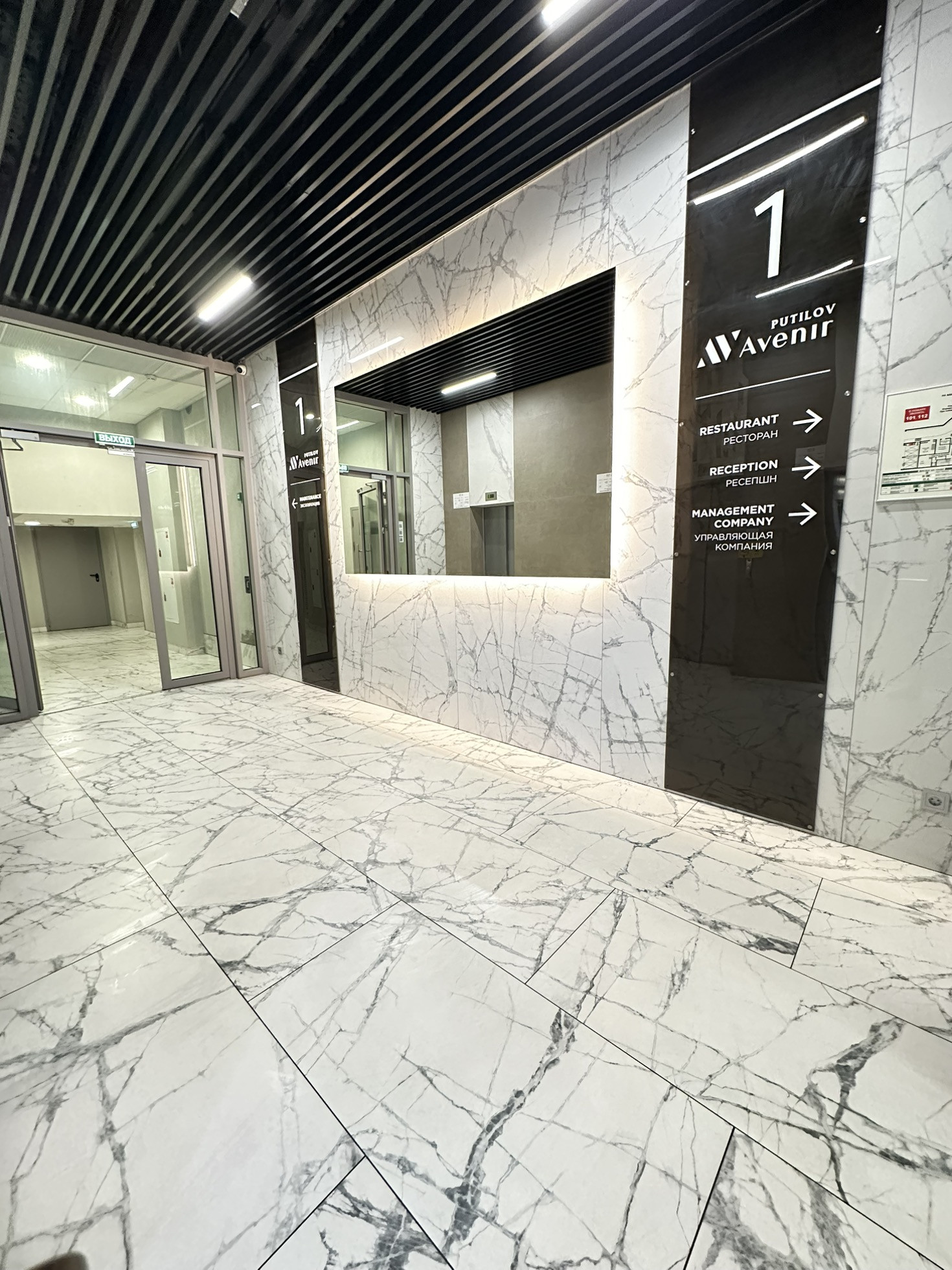Презентабельный холл с ресепшен, позволит решать вам свои рабочие вопросы.