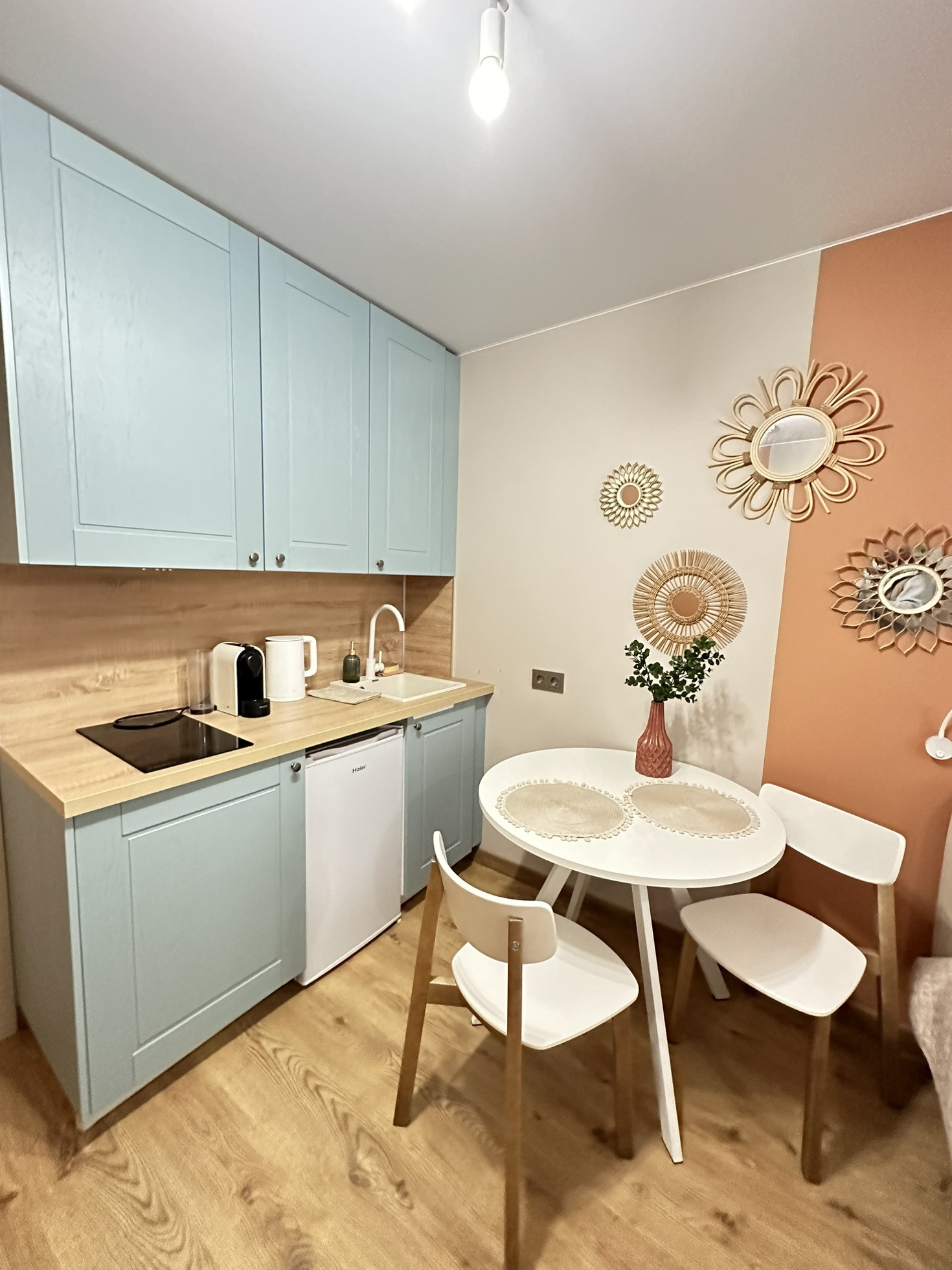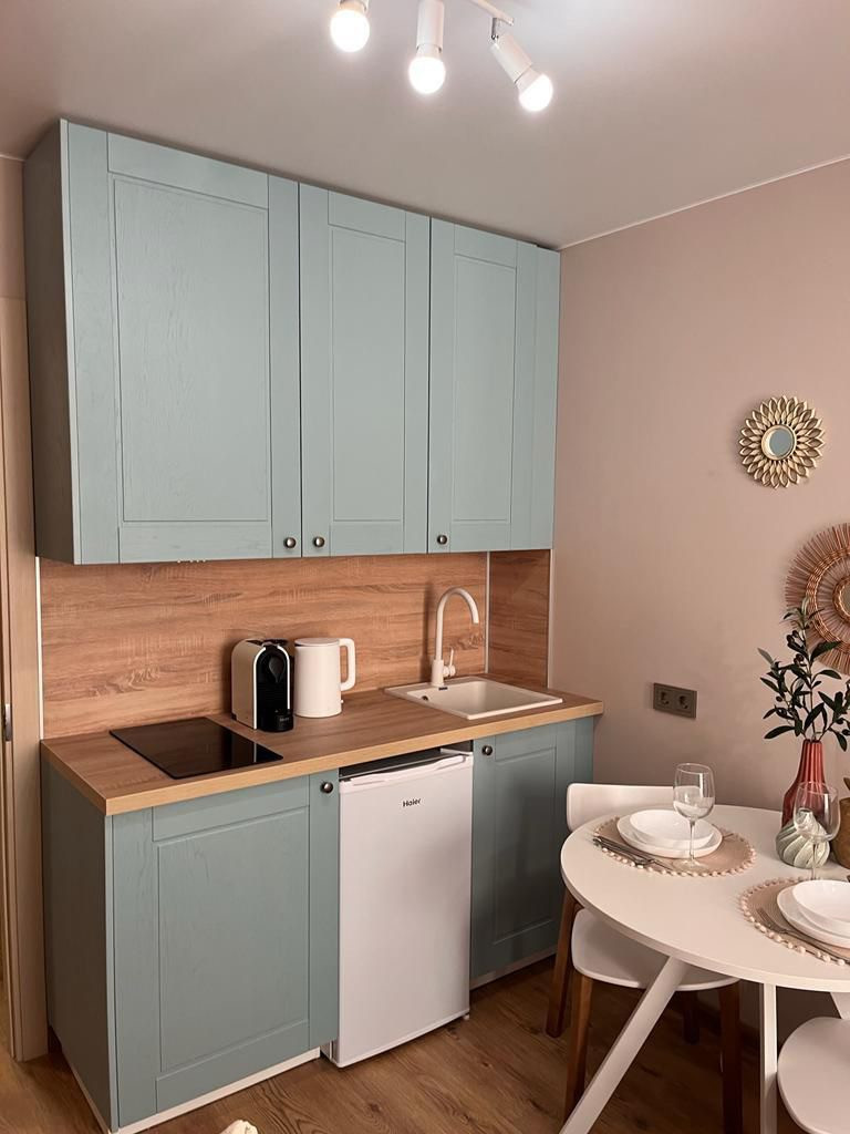 * полностью оборудованная кухня с варочной поверхностью и вытяжкой