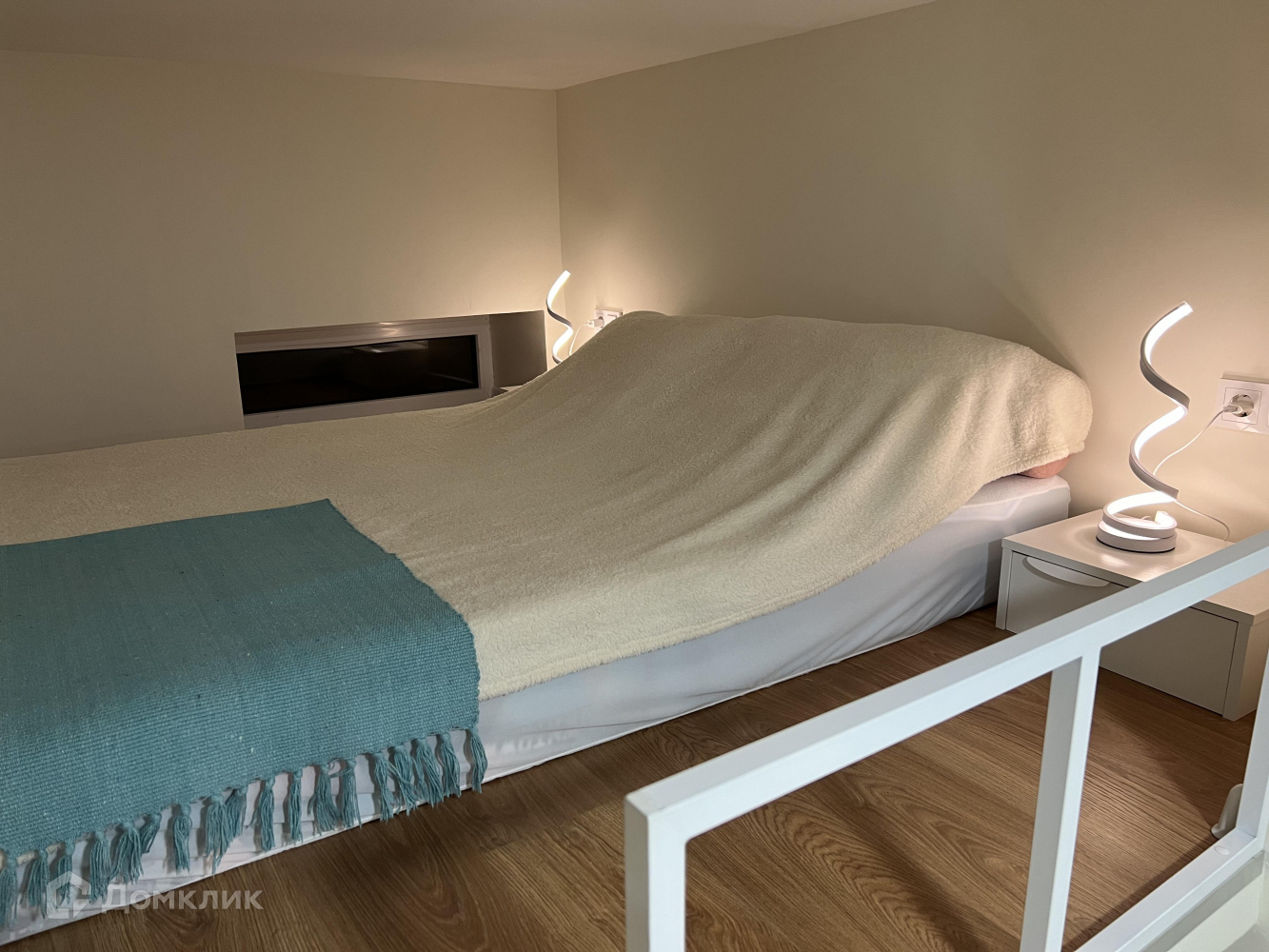 - За счет окна на втором этаже очень светло. Вечером уютную атмосферу создают ночники около кровати.