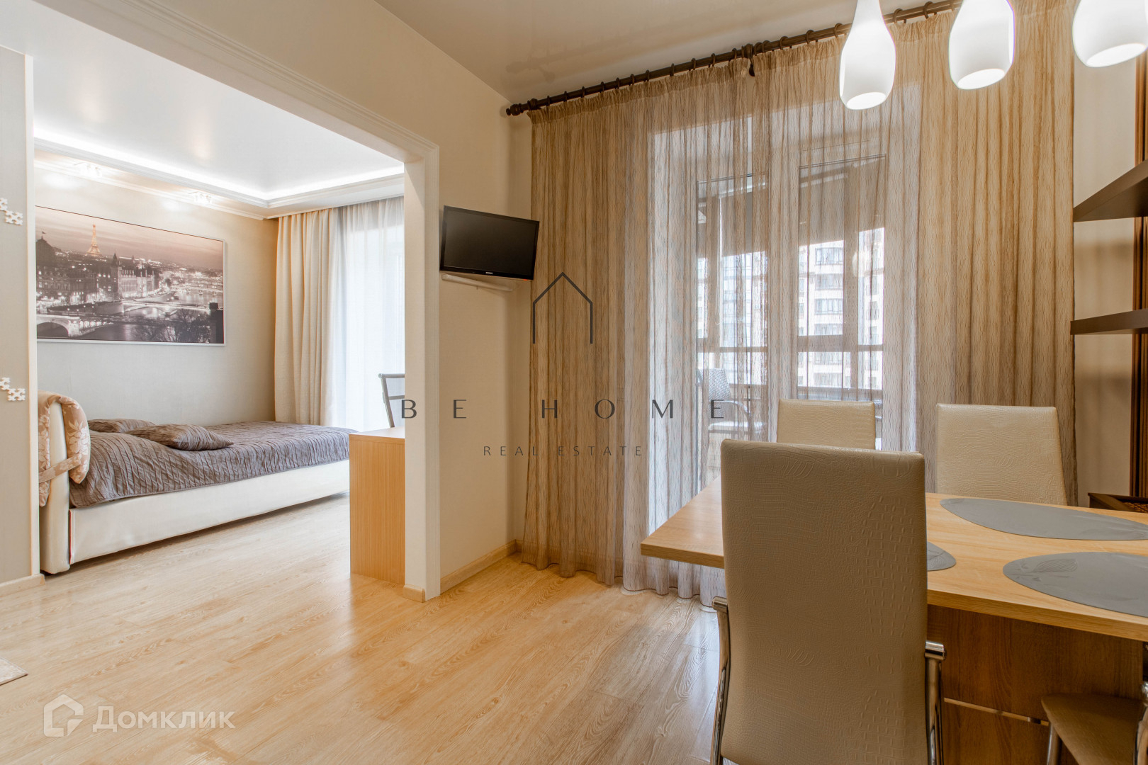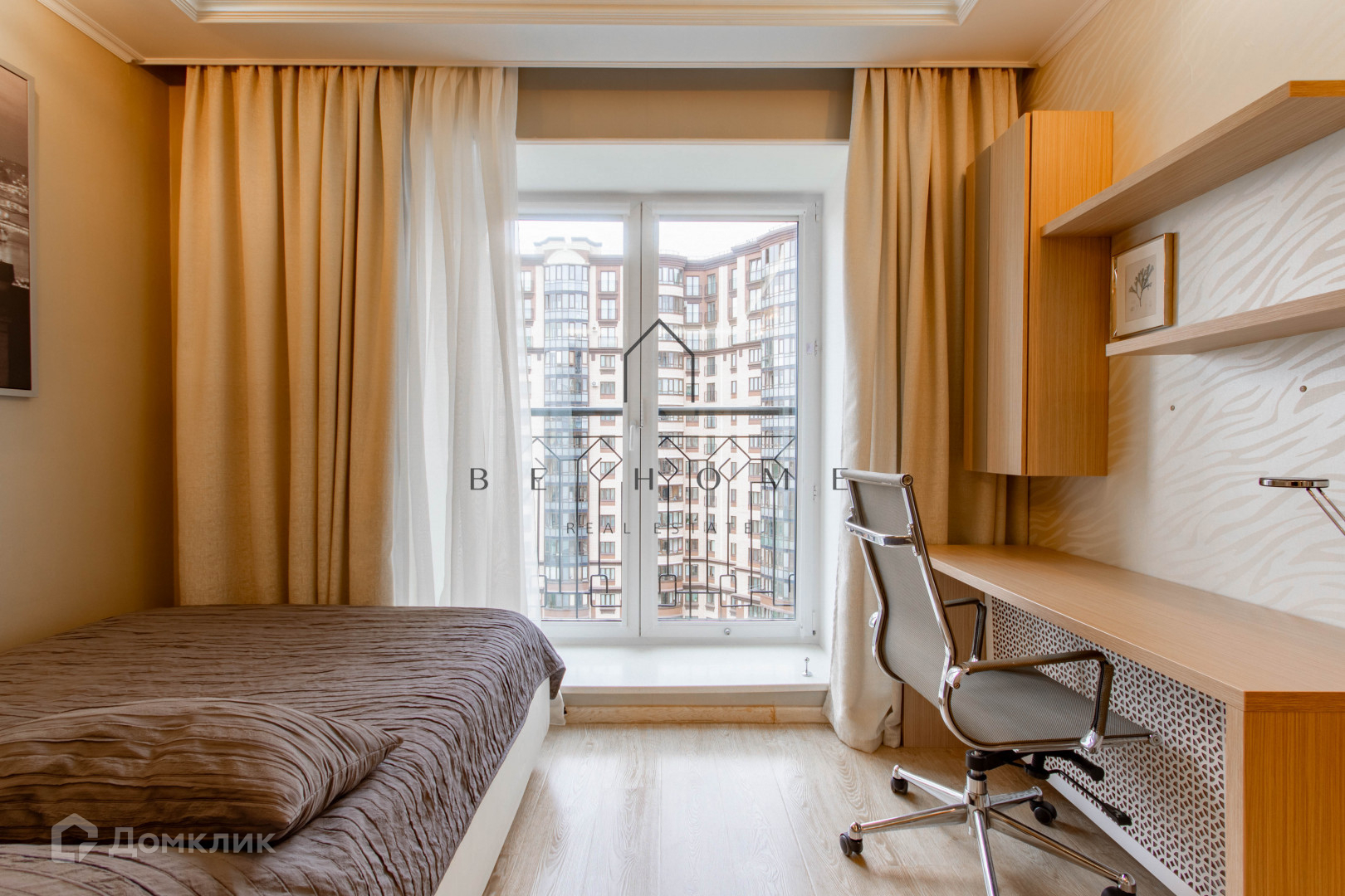 Укомплектованная кухня, выделенная спальная зона, совмещенная ванная комната, гардеробная, лоджия.