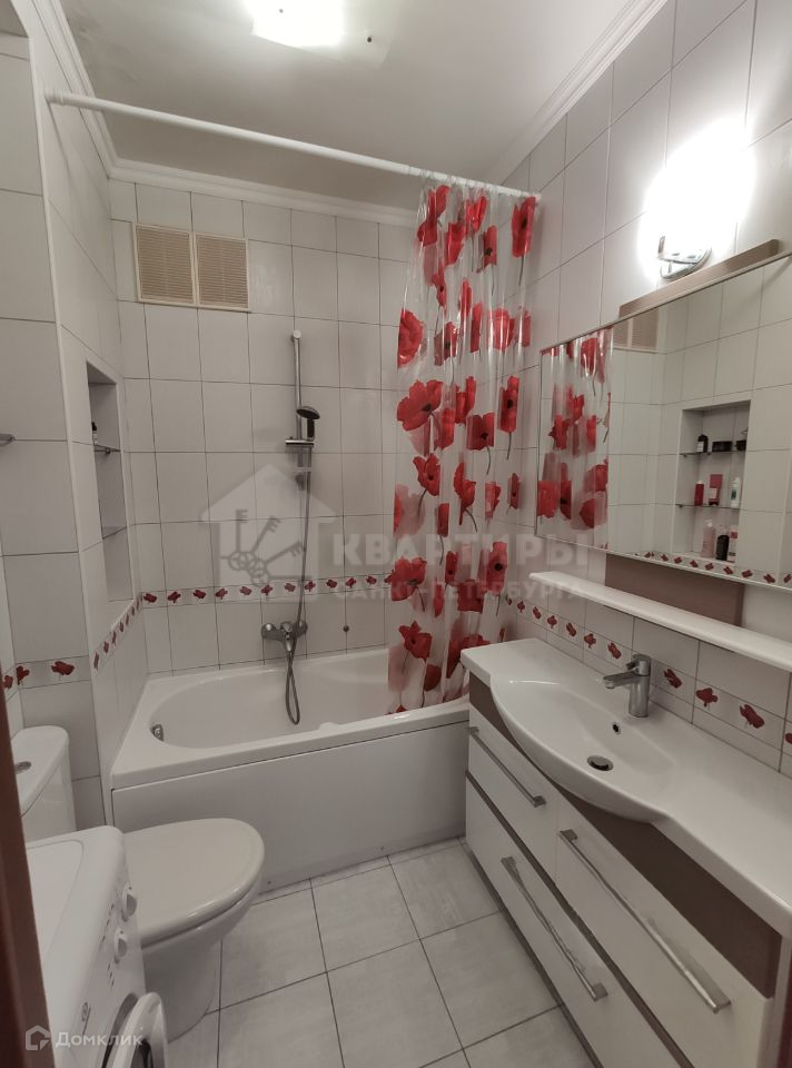 Квартира полностью меблирована и оснащена необходимой техникой для комфортной жизни — есть холодильник, газовая плита, духовой шкаф, чайник, вытяжка, пылесос, утюг и огромный смарт ТВ.