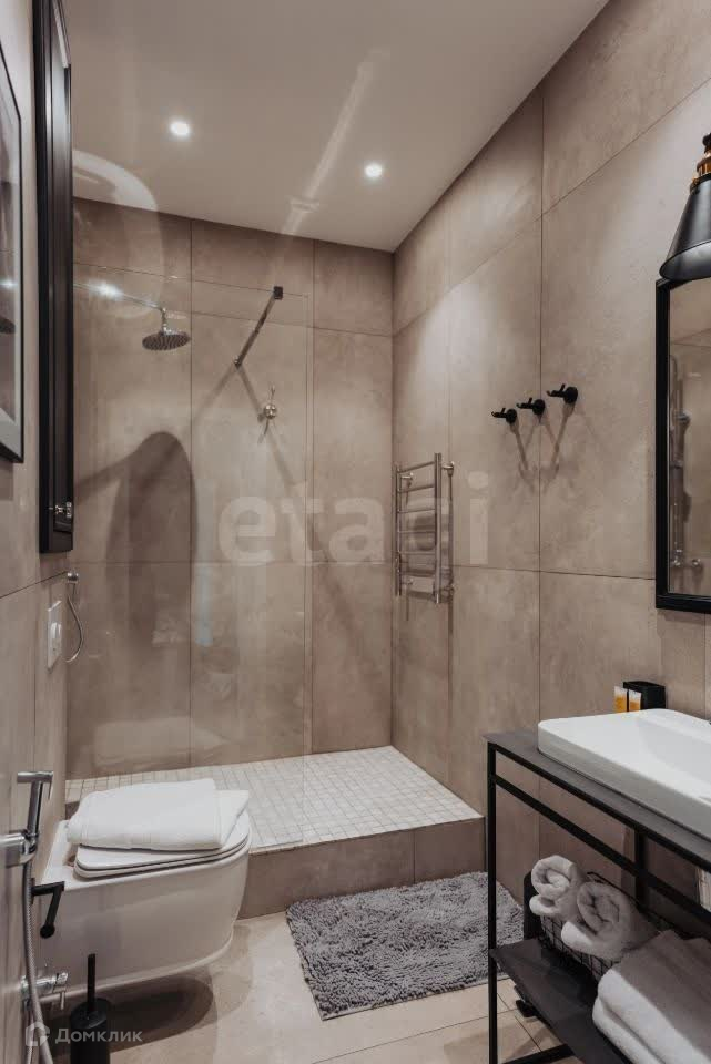 - Ванная комната с душем и всеми необходимыми косметическими принадлежностями, включая фен, полотенца