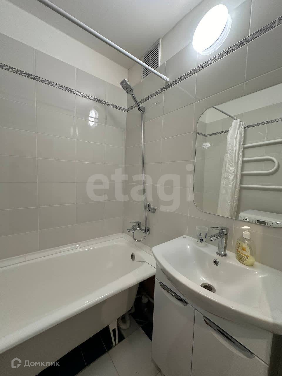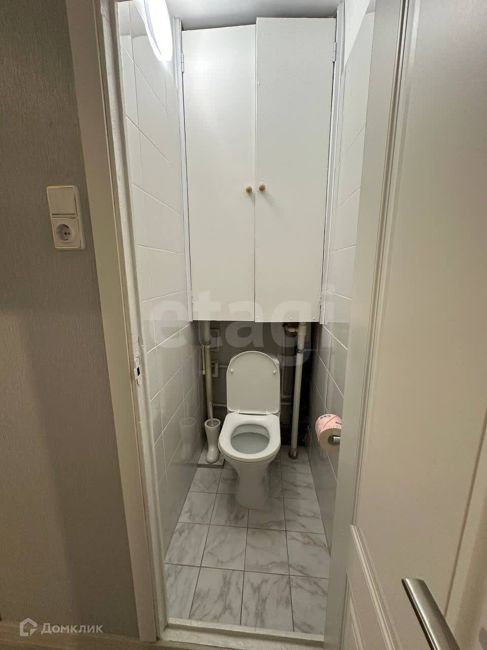В квартире имеется небольшая ванная комната, оформленная в светлых тонах, что визуально увеличивает пространство. Так же имеется зона хранения это кладовая.