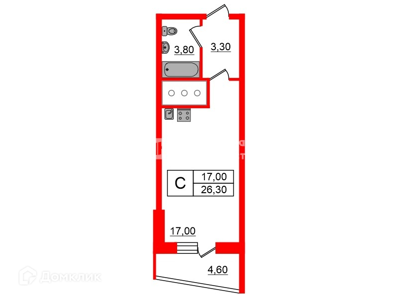 Общая площадь 26.3 м2