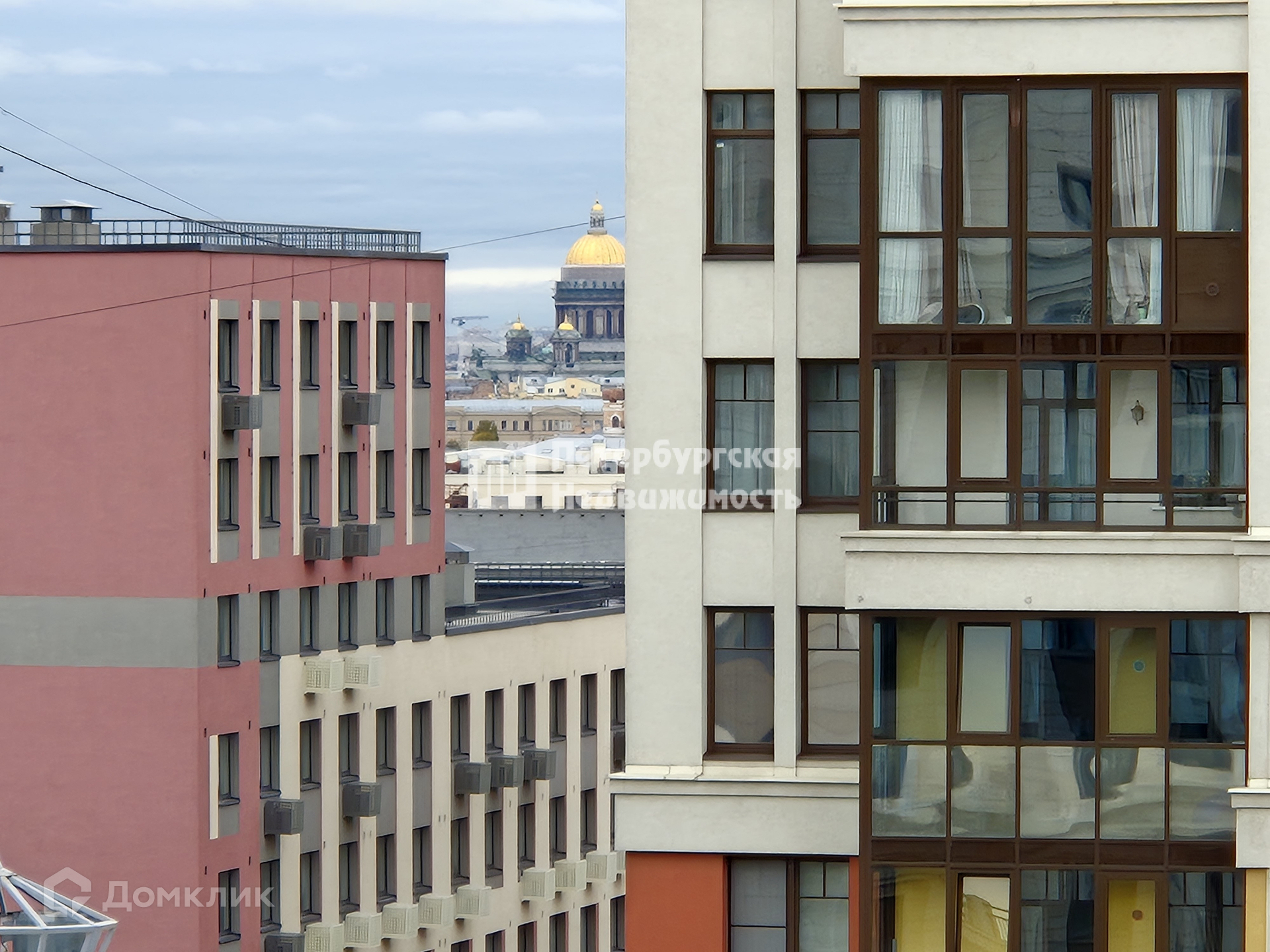 С балкона открывается боковой вид на Исакиевский собор. Квартира готова для комфортного проживания, есть вся необходимая мебель и техника: электрическая варочная панель, духовка, чайник, стиральная машина, посудомоечная машина, телевизор, диван, шкаф и встроенная кухня с вытяжкой и стол со стульями.