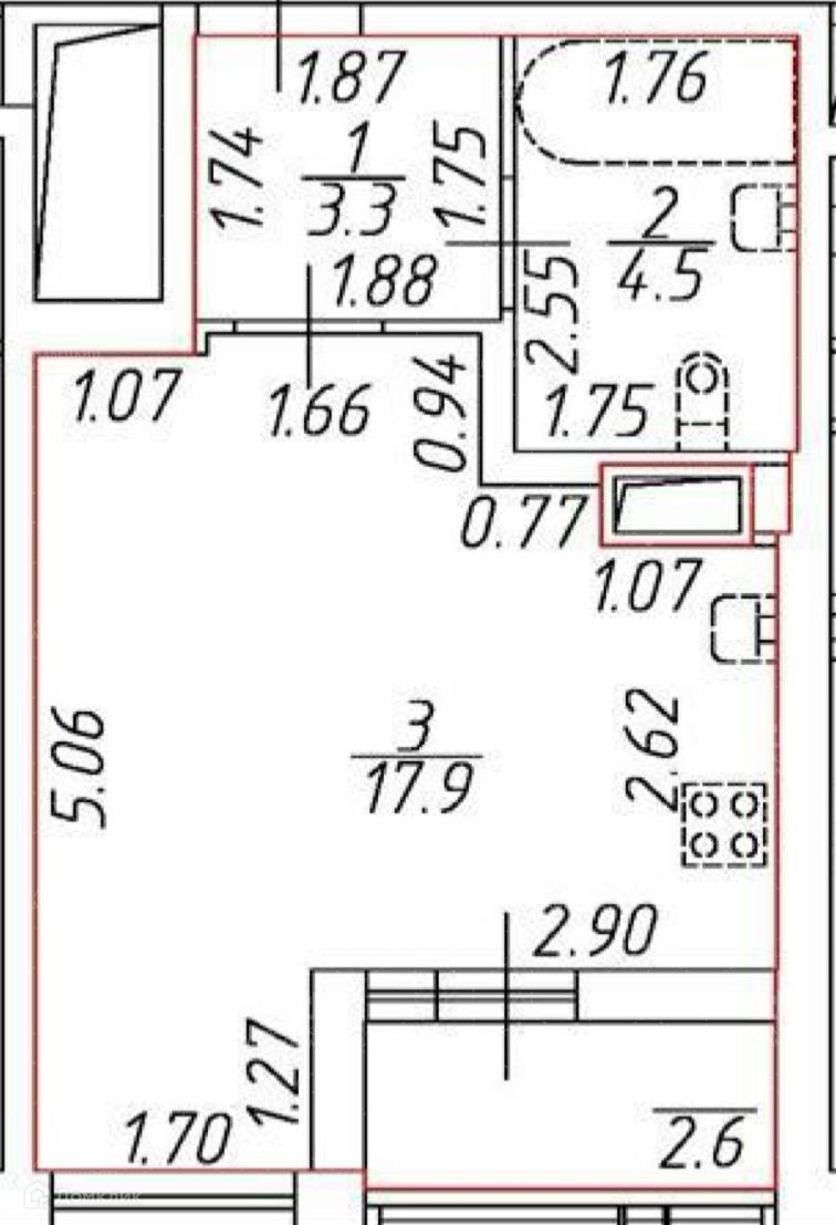 Общая площадь 26 м2