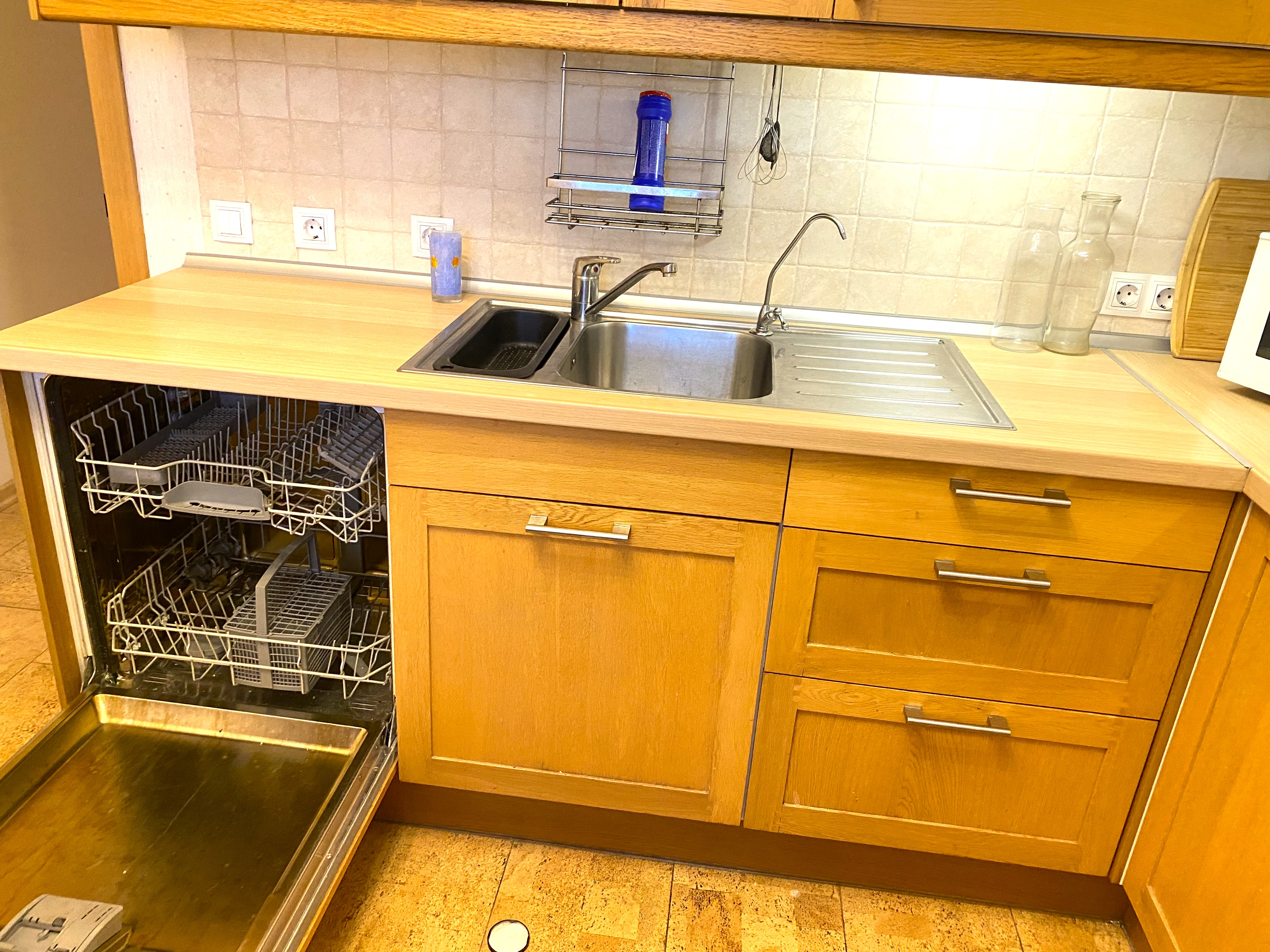 Квартира с евроремонтом, что создает современную и уютную атмосферу. В квартире пробковые полы- это экологически чистый натуральный, теплый материал. Ванной пол с подогревом. На кухне есть необходимая мебель, а из техники — холодильник, посудомоечная машина. Также в квартире есть стиральная машина, электроводонагреватель на случай отключения воды и телевизор. Санузел совмещенный, оборудован ванной. С балкона, выходящего во двор, открывается отличный вид на Лахта Центр.