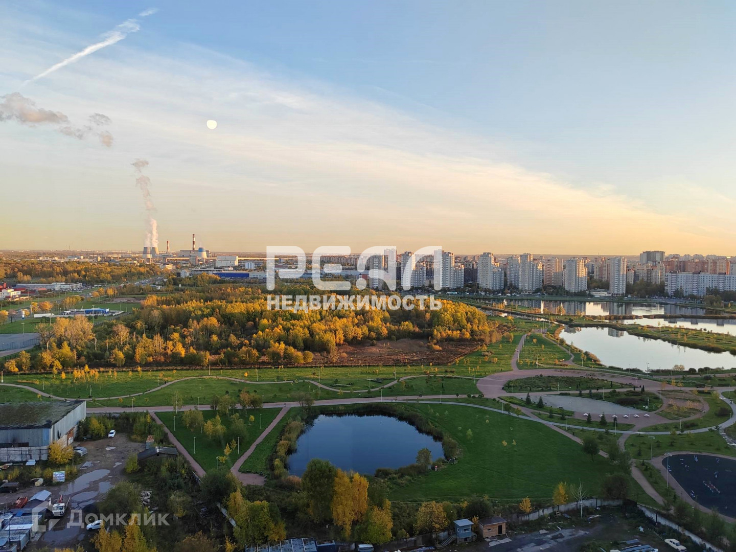 Высокий этаж с видом на парк и город.