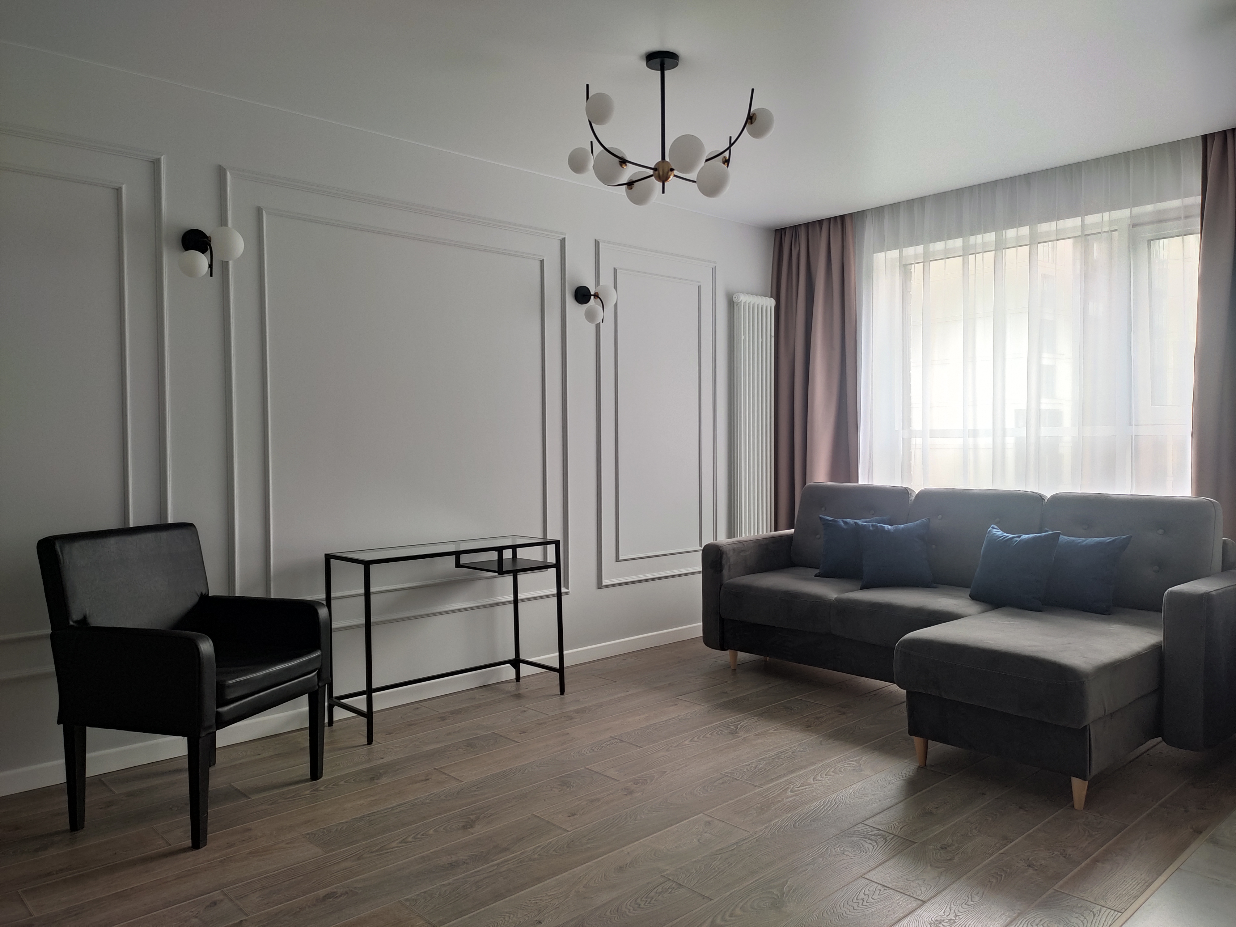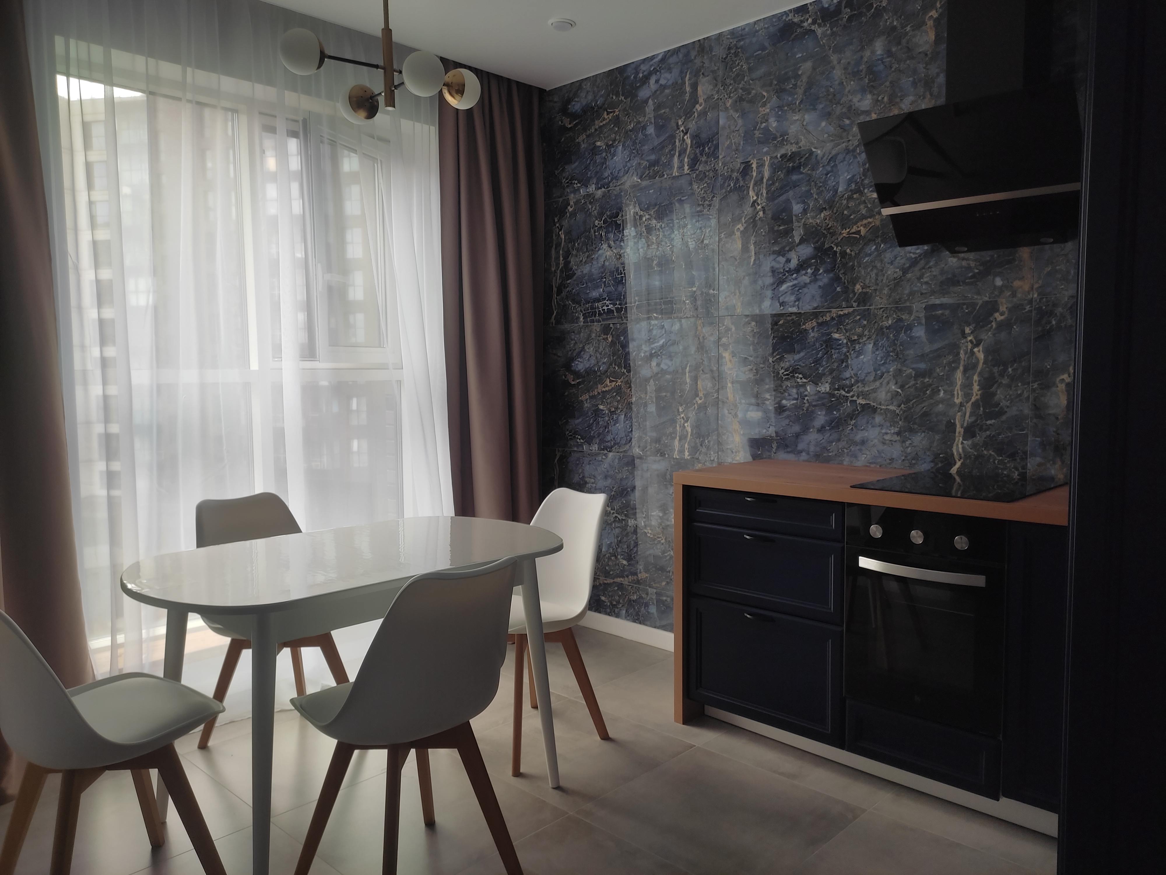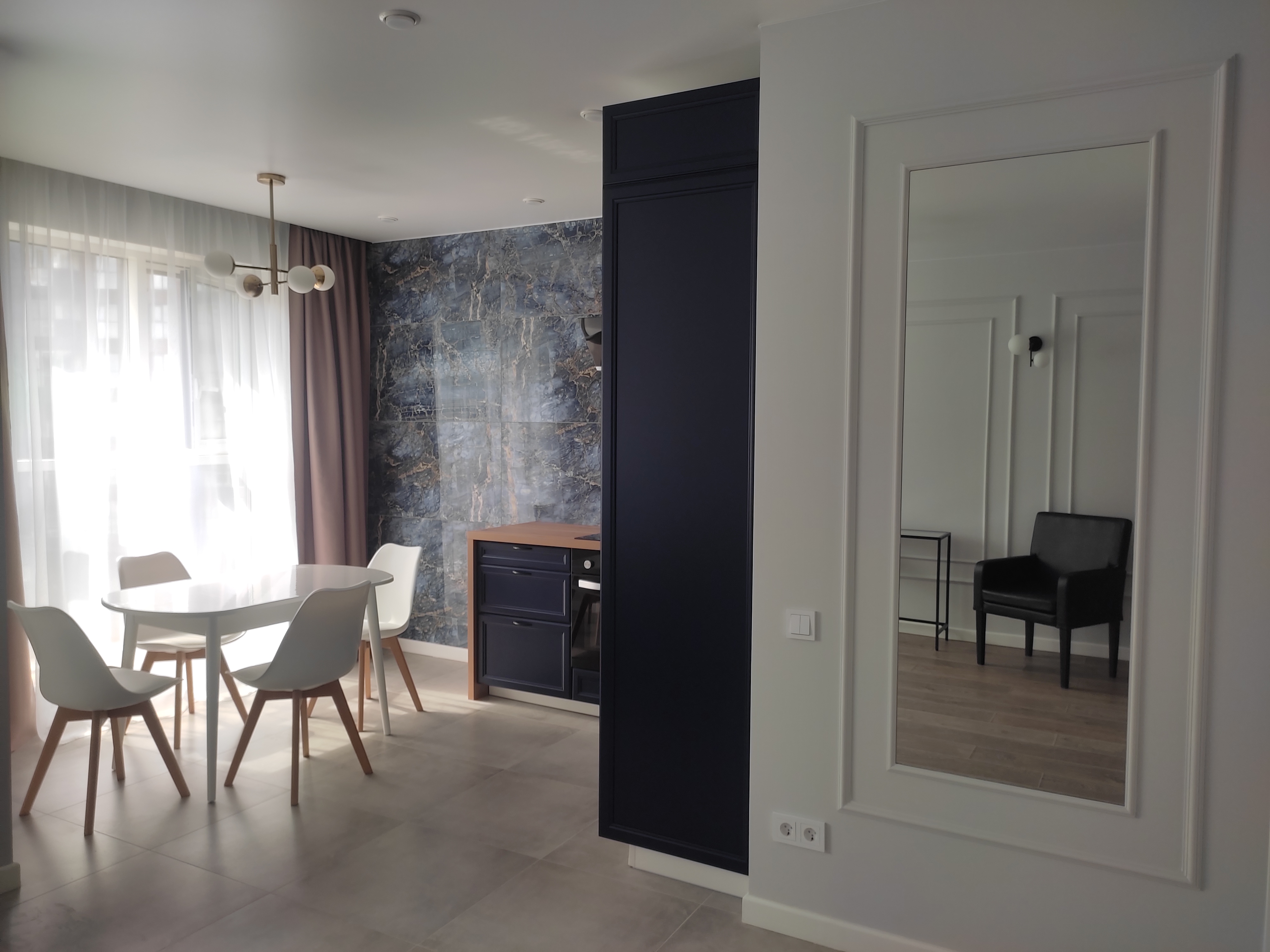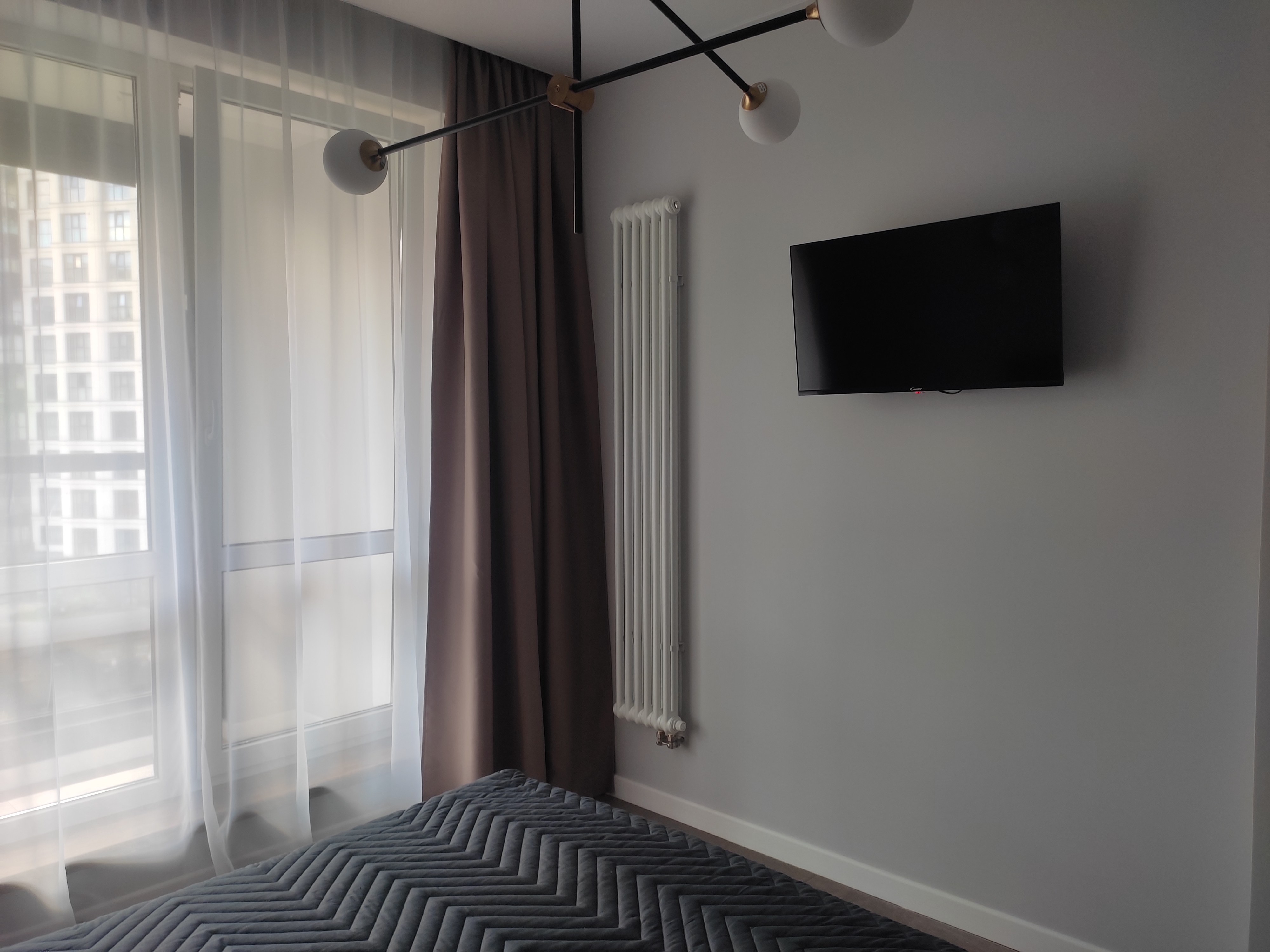 Комфортная квартира с дизайнерским ремонтом в новом жилом комплексе с закрытой территорией, в непосредственной близости к центру Санкт-Петербурга. Идеальный вариант для тех, кто хочет остановится близко к историческому центру, но пользоваться всевозможным комфортом современного жилья!!! Вся необходимая инфраструктура в шаговой доступности. До Невского проспекта легко можно добраться на любом общественном транспорте, тем более, что у него здесь выделенная линия, а также прогуляться пешком.На территории жилого комплекса есть детские площадки и места для отдыха. В квартире имеется всё для комфортного проживания: от кухни с холодильником, посудомоечной машиной, духовым шкафом, капсульной кофемашиной; гостиной зоны с диваном, телевизором, интернетом; спальной зоны с двуспальной кроватью и дополнительным телевизором; вместительной гардеробной до полотенец, ванных принадлежностей, отпаривателя, стиральной машины и моющих средств.  Для комфортного проживания установлен кондиционер.
