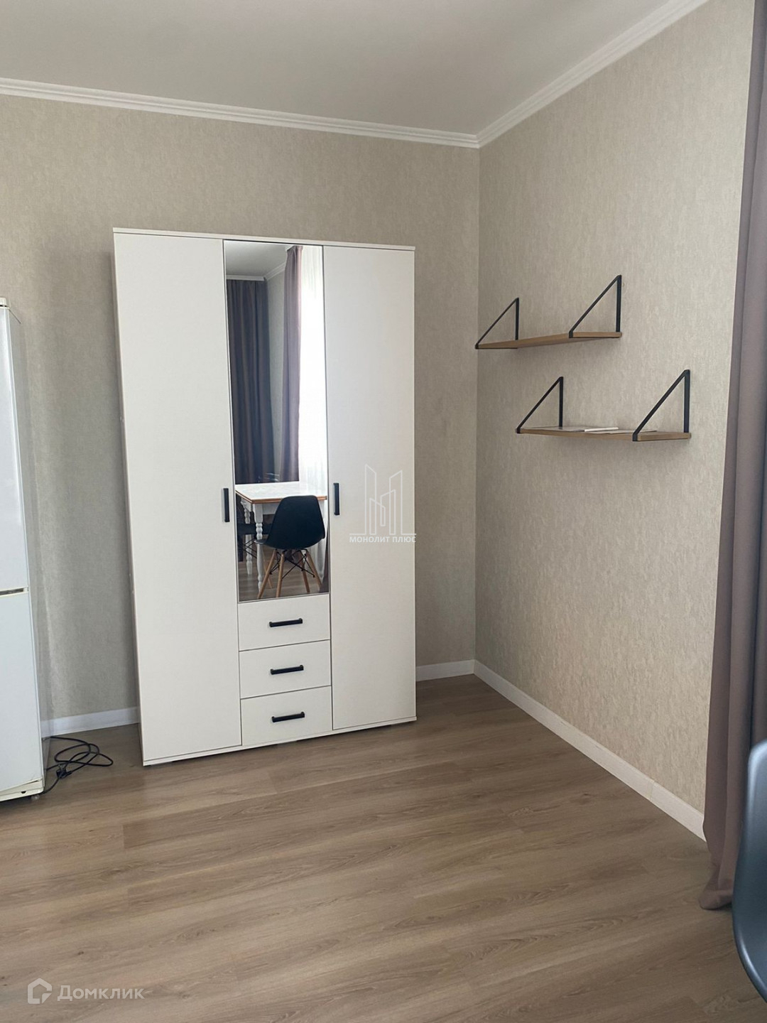 Мебель для проживания есть. Есть стиральная машина, холодильник, кухонная зона, в прихожей шкаф. В комнате 2-х спальная кровать с матрасом Аскона, шкаф, стол.