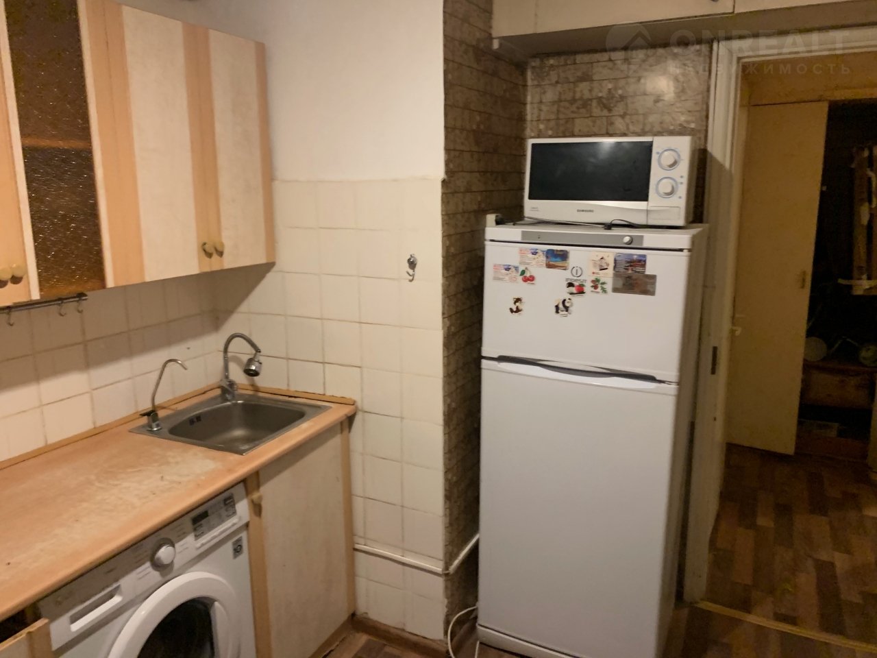 Из техники есть стиральная машина, 2-х камерный холодильник, телевизор, СВЧ-печь, пылесос.