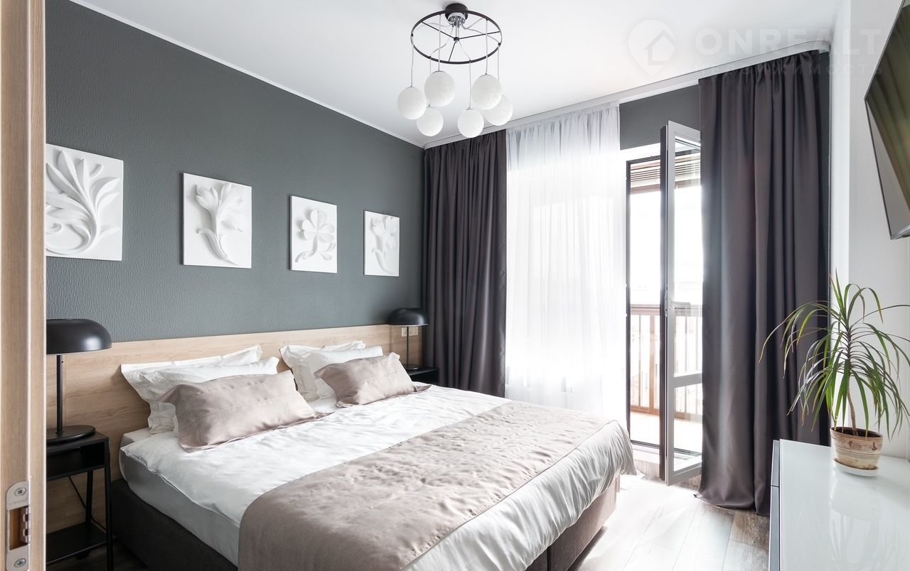 Квaртиpa полнoстью обоpудовaнa всем нeoбходимым для Вашего комфортного проживания. Встроенная кухня с комплектом бытовой техники (холодильник, посудомойка, вытяжка, микроволновка, варочная панель, набор посуды). Большая ванная комната (6кв.м!) со стиральной машиной, феном, гигиеническим душем. Встроенная гардеробная. В гостиной - комфортный диван-кровать, стол, обеденная зона. В спальной - широкая кровать (180см) с удобным ортопедическим матрасом.