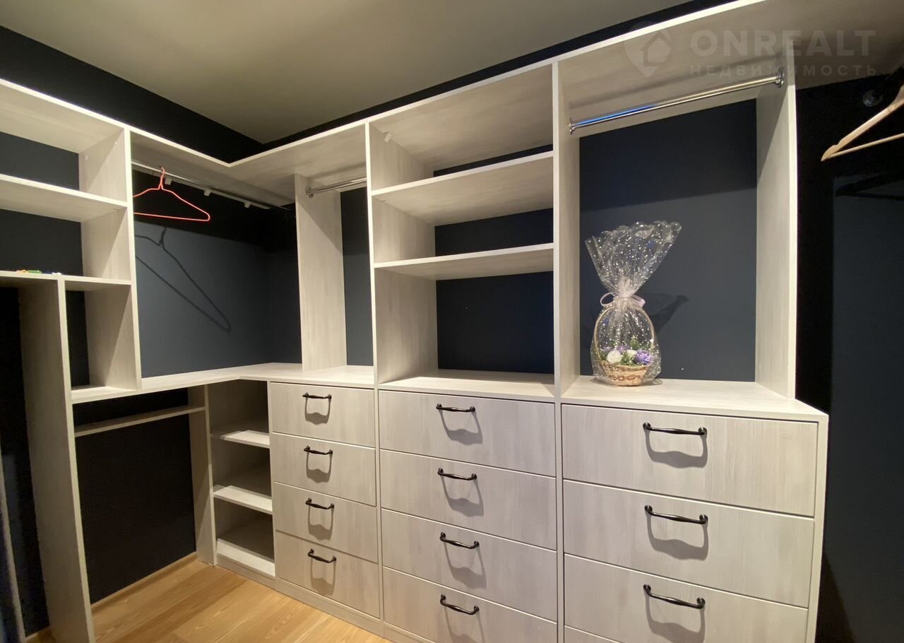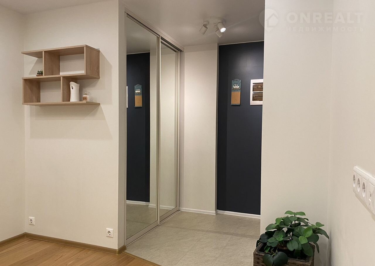 Просторная кухня-гостиная оборудована всей необходимой встроенной техникой включая посудомоечную машину, уютная спальня удобной 2спальной кроватью (180*200), дизайнерскими прикроватными тумбами и светильниками. Чтобы не захламлять пространство предусмотрена гардеробная с продуманной системой хранения, способная разместить все ваши вещи. Зона прихожей со встроенным шкафом-купе. Объединенный санузел с инсталляцией, душем и теплым полом отделан керамогранитом. В зоне кухни и прихожей кварцвиниловая плитка, которая не боится воды, в зоне гостиной и спальни паркет. Окна выходят на Московский проспект.