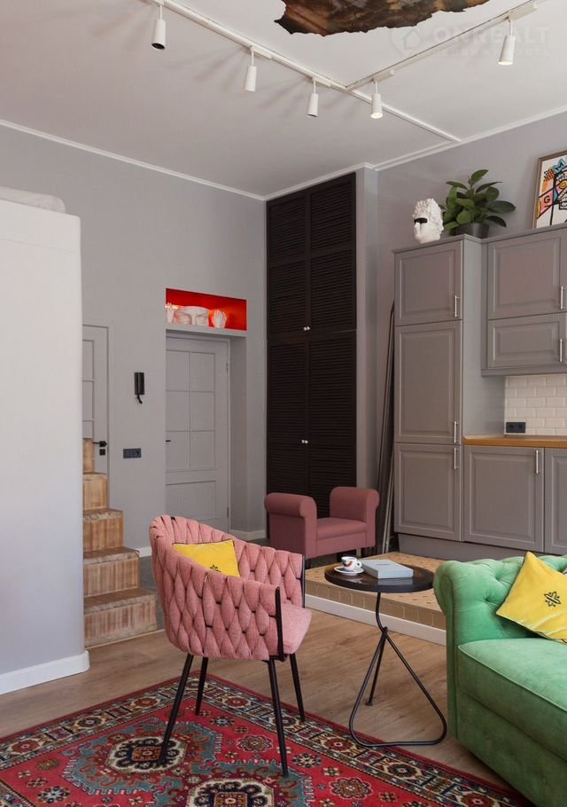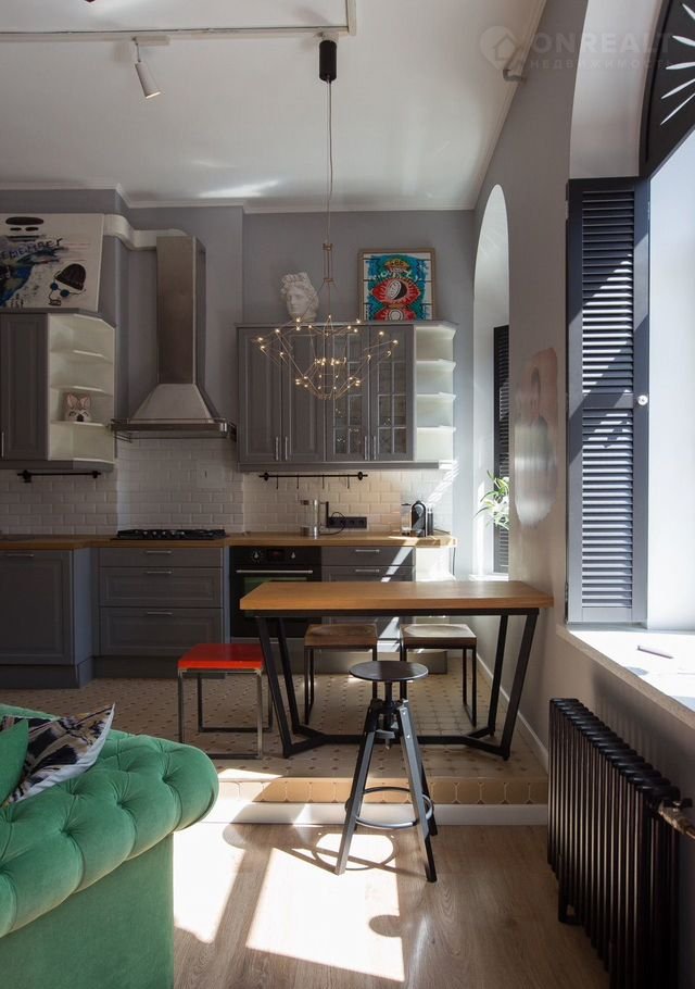 В квартире выполнен дизайнерский ремонт, который подчёркивает её уникальность и комфорт. Просторная кухня площадью 15 кв. м полностью оборудована современной техникой: холодильник, посудомоечная и стиральная машины. В комнате и на кухне есть вся необходимая мебель. Санузел совмещённый, оборудован душевой кабиной.