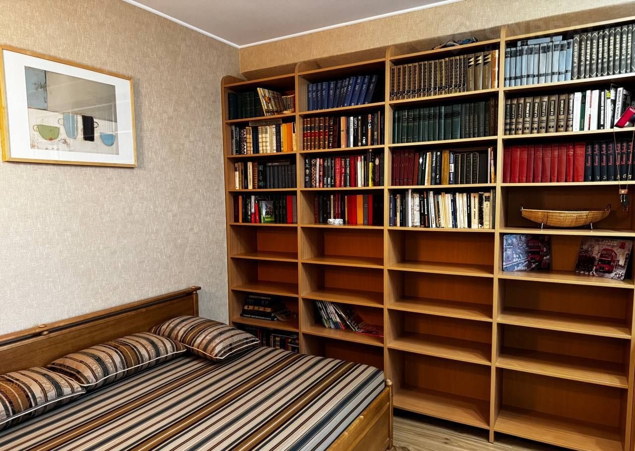 Из мебели: Двухспальная кровать 160-200 см, двухспальная тахта 140-200 см, шкафы-купе, письменный стол, книжные стеллажи, кресла, кухонный и обеденный гарнитуры, плетеная мебель на балконе.