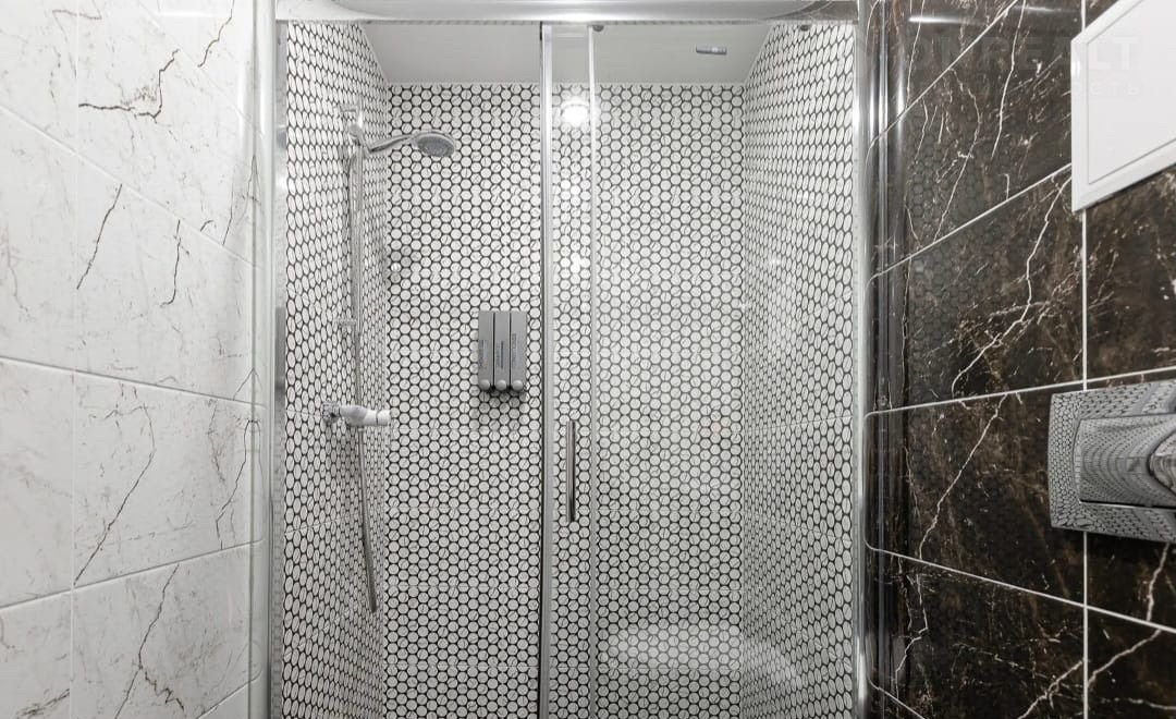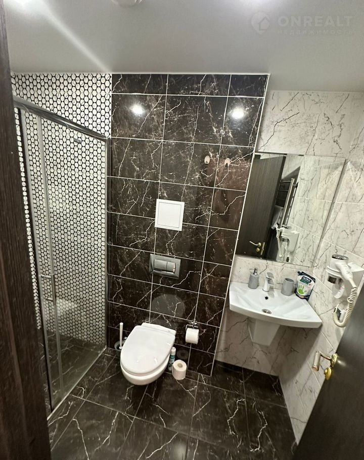 Ванная совмещенная с санузлом: душ, умывальник, унитаз, гигиенический душ, пол с подогревом, фен.