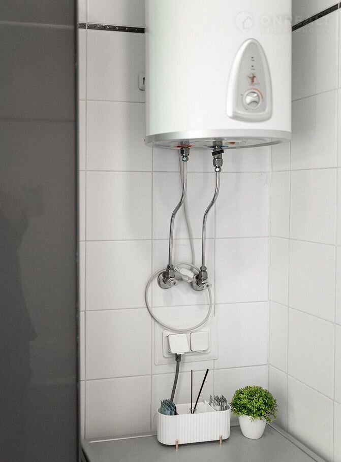 Накопительный водонагреватель, отключения горячей воды не страшны.
