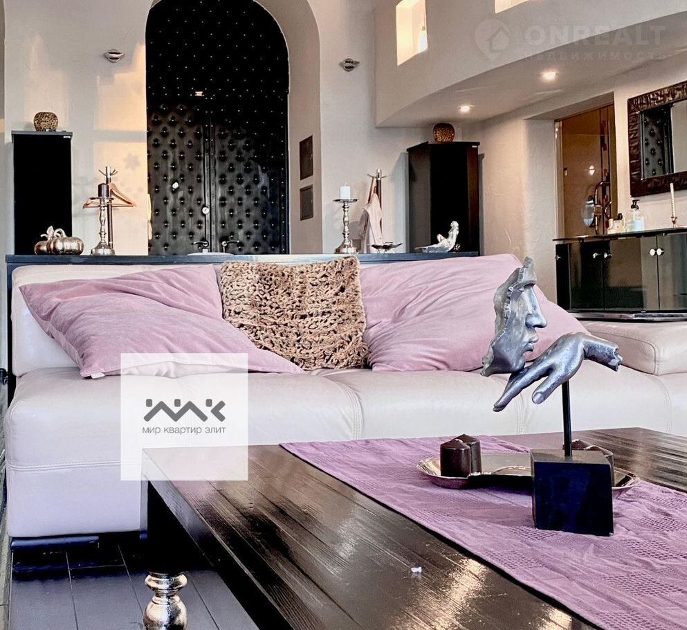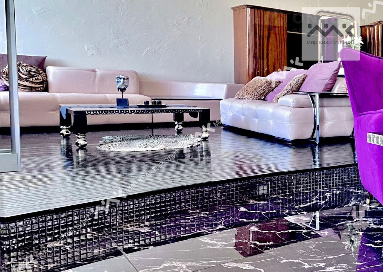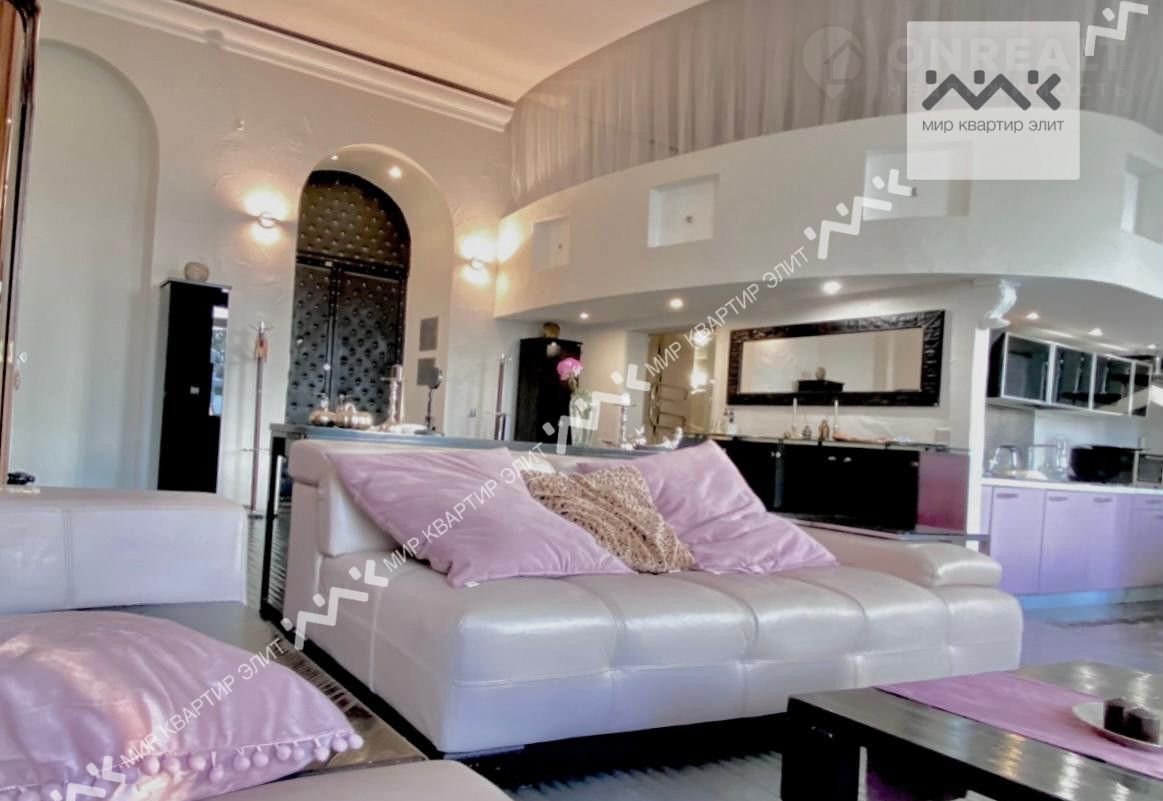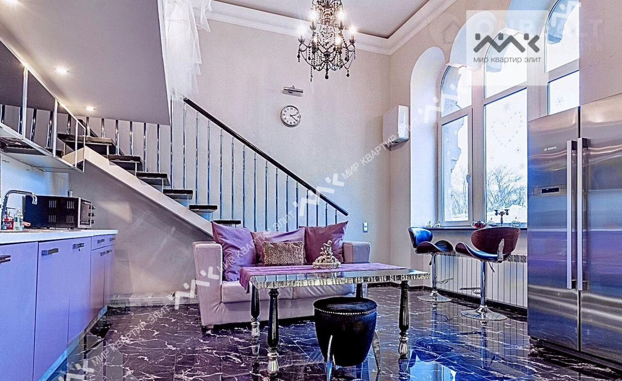 Квартира выполнена в свободной планировке, 2 уровня, спальня наверху, внизу- одно большое свободное пространство 70м2. Полы с подогревом, кожаная мебель, мраморные подоконники.