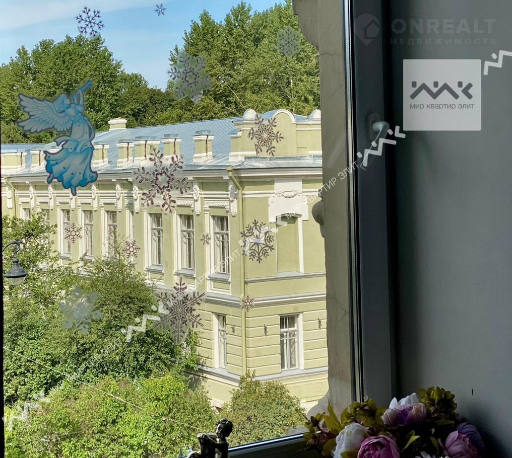 Прекрасный вид из фантастически красивых окон открывается на парк и на бывшую академию императорского полка Николая II, а также на памятник Александру II.