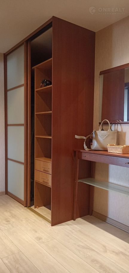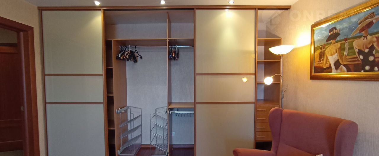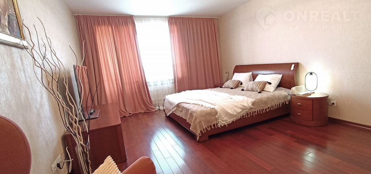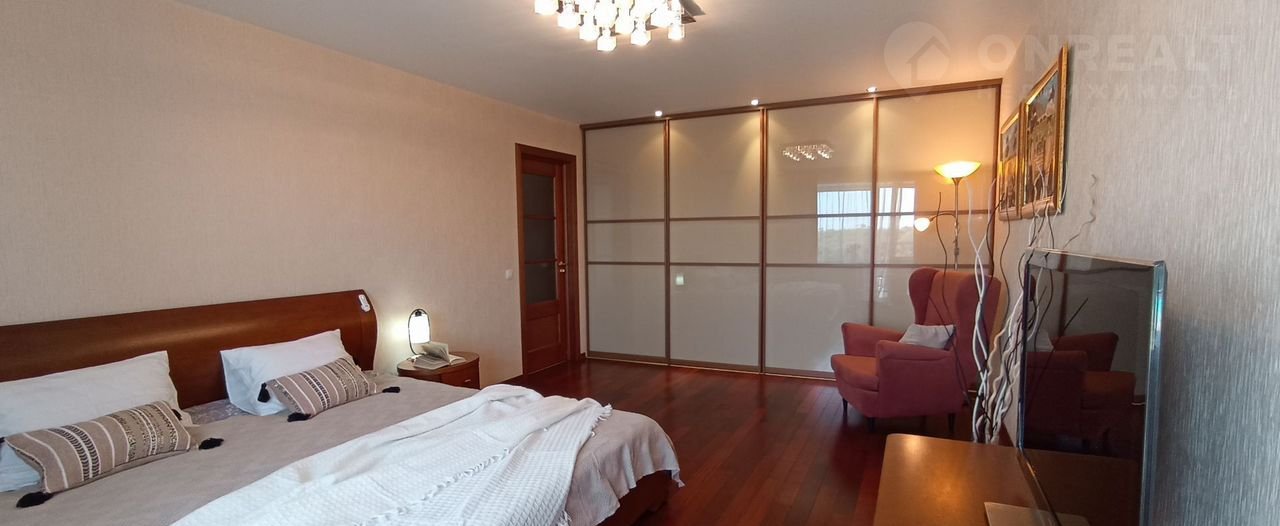 Общая площадь квартиры 66 кв. м. Просторная светлая спальня, площадью 22 кв. м. с  большой двухспальной кроватью, прикроватными тумбочками. огромный шкаф купе.  Организаваны места хранения бытовой техники.