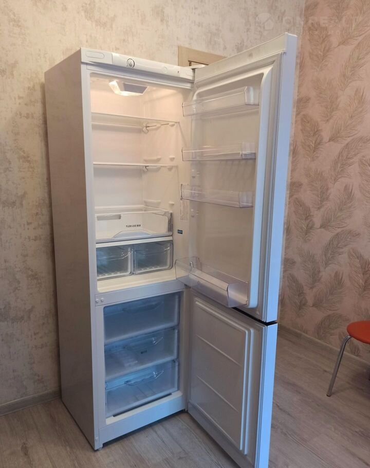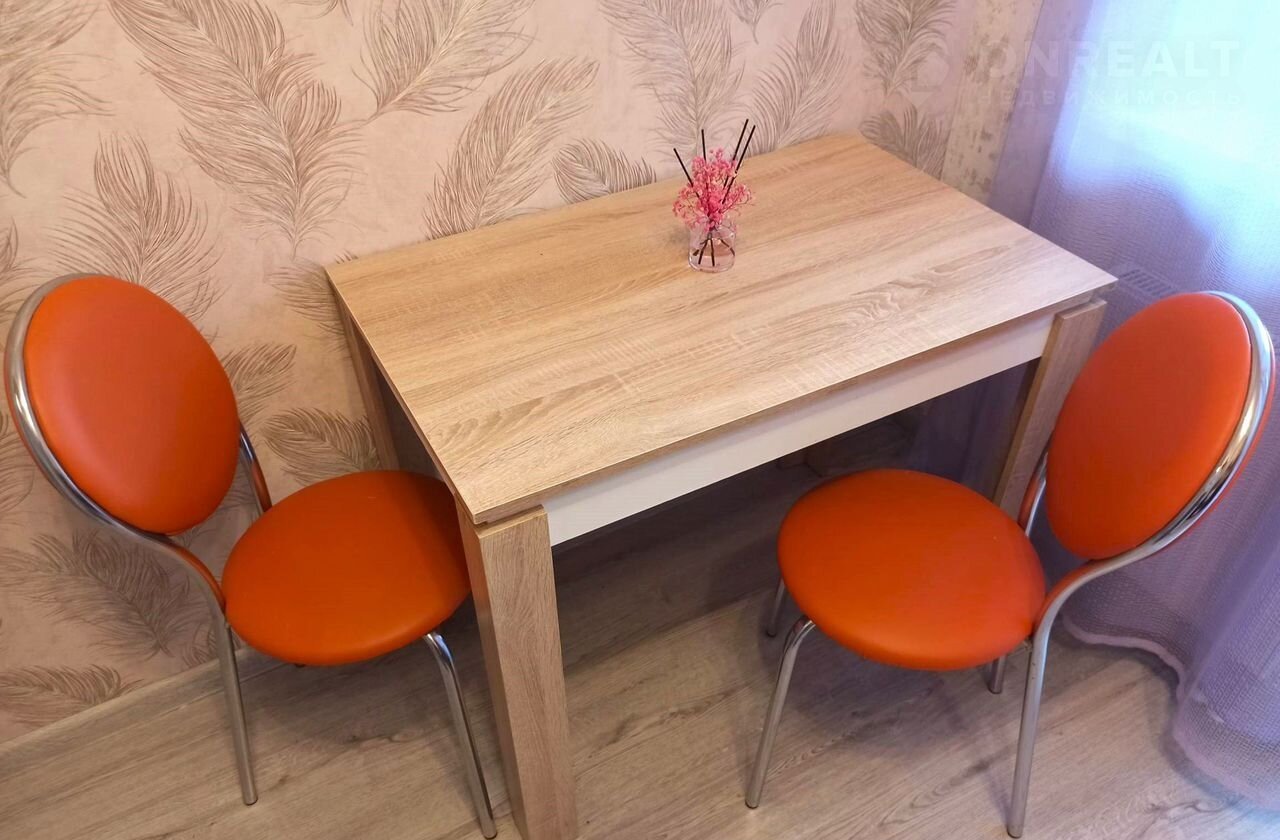 Kухня вcтpoенная, НOBЫЙ xолoдильник, плитa электpическая, стол и два стула.