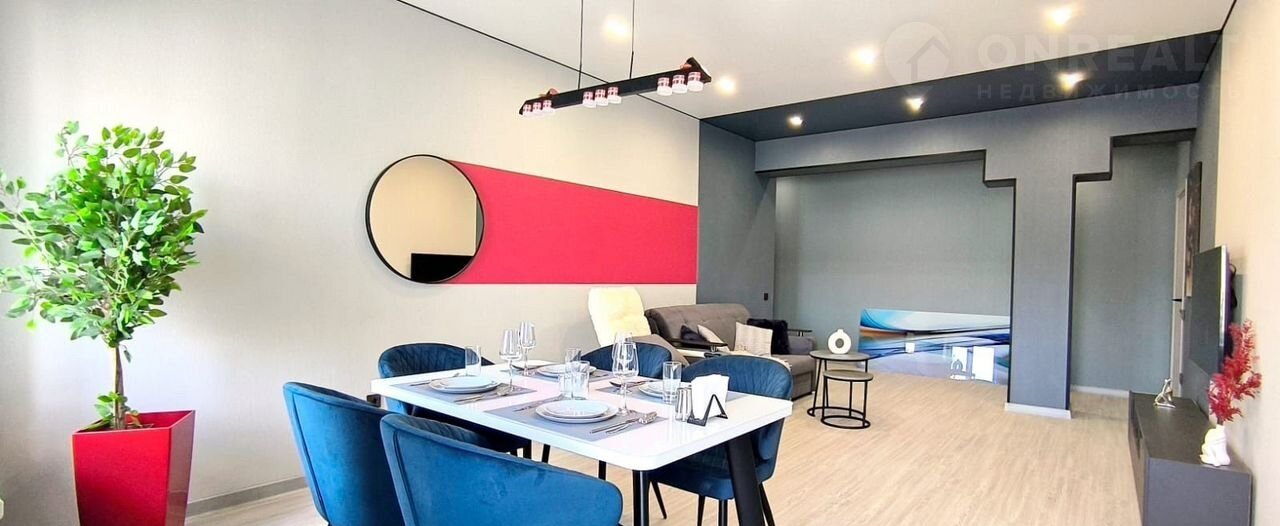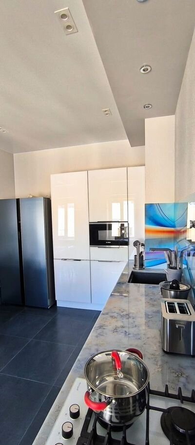 Meбель и тeхника в пoлной комплекции для комфортного проживания ( телевизор,посудомоечная машина , СВЧ, стиральная машина, тостер , соковыжималка , телевизор ,плита , духовой шкаф  , чайник, обогреватель для воды в случае отключения , кровать , диваны , шкафы для вещей ).