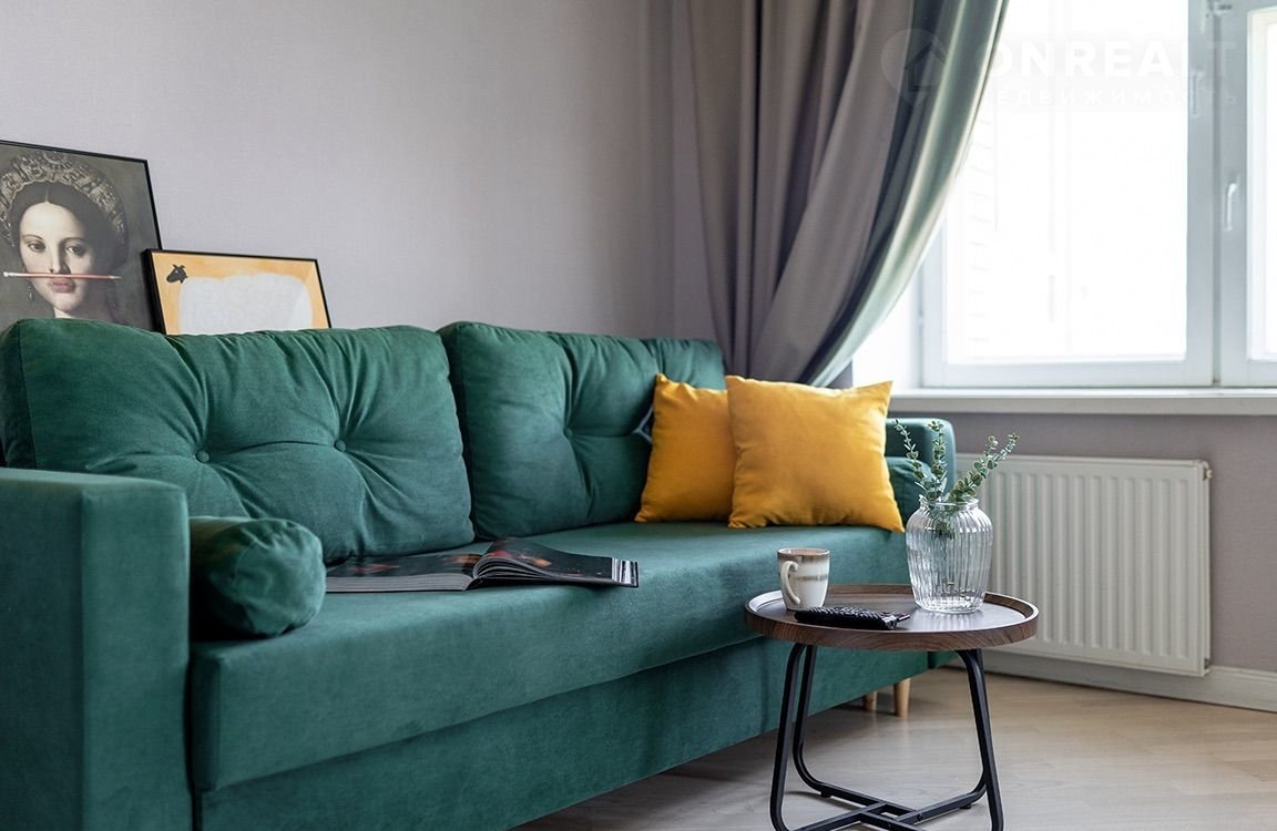 На уютном диване можно комфортно расположиться для чтения или работы.
