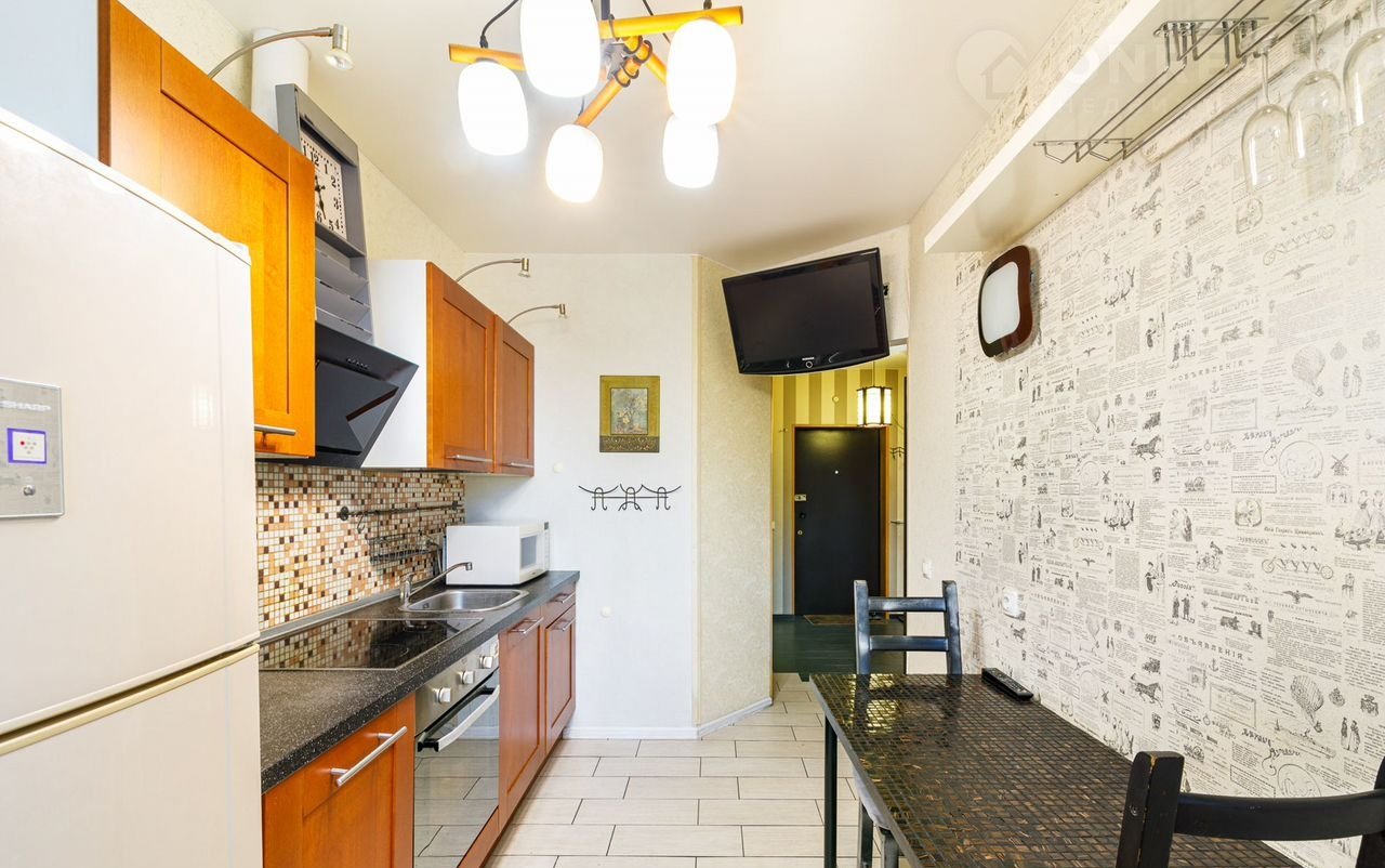Выполнен дизайнерский ремонт с использованием мебели из ИКЕА, паркетной доски и мозаики. Мебель включает кухню и двери из массива дерева, есть вся необходимая техника (в том числе посудомоечная машина). В квартире установлены итальянские светильники, кожаный диван на кухне, стиральная машина, фильтры для воды, бойлер для горячей воды при отключении горячей воды, комод, компьютерный стол и шкаф.