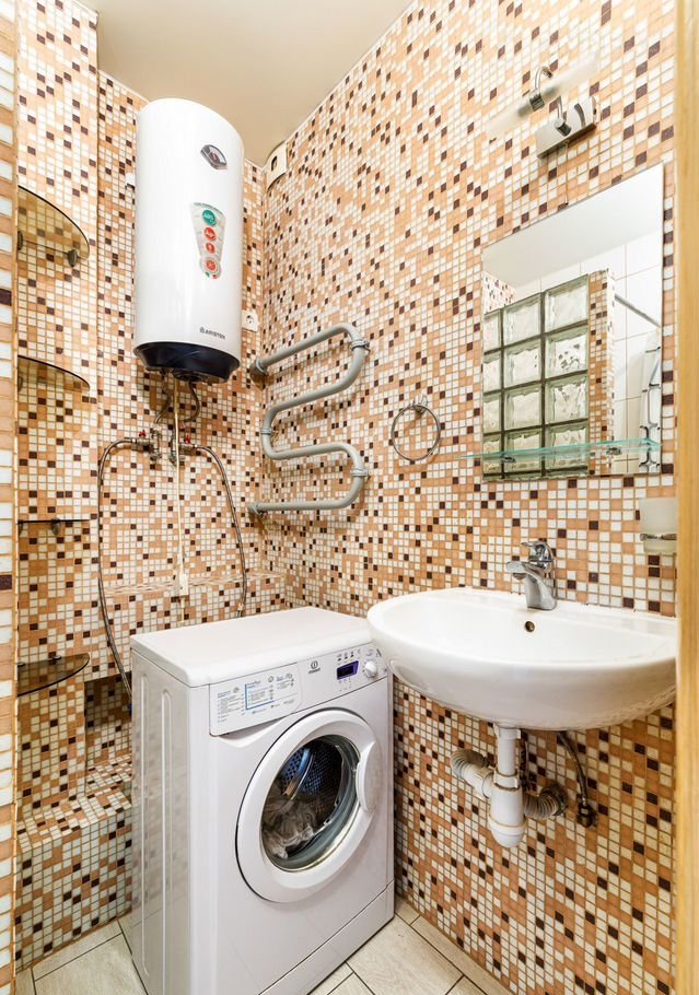 Раздельный санузел с импортной сантехникой. В доме тихий двор, домофон и три лифта; вход без ступенек — подходит для колясок.