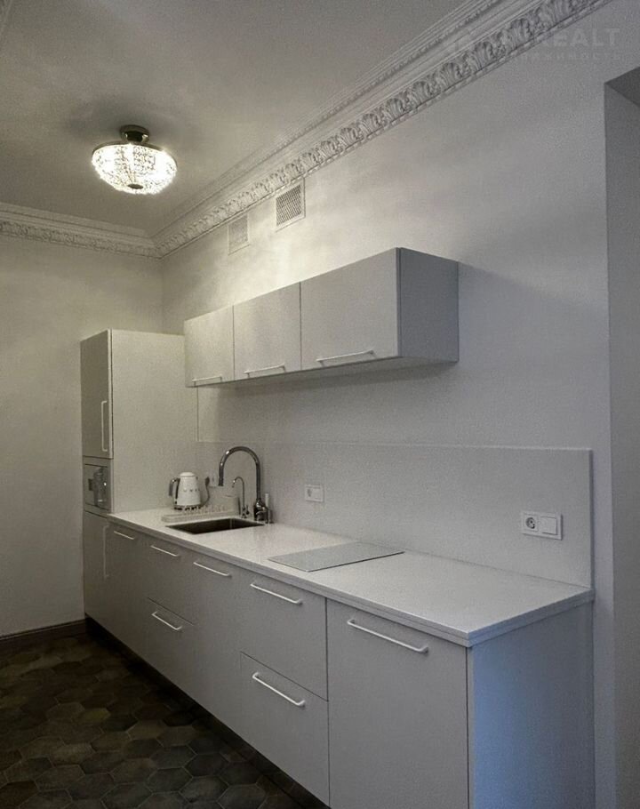 Гипсовая лепка и стильные деревянные двери создают атмосферу тепла и уюта. Встроенная кухня с современной техникой и теплыми полами позволит вам наслаждаться комфортом современных условий без потери исторического очарования.